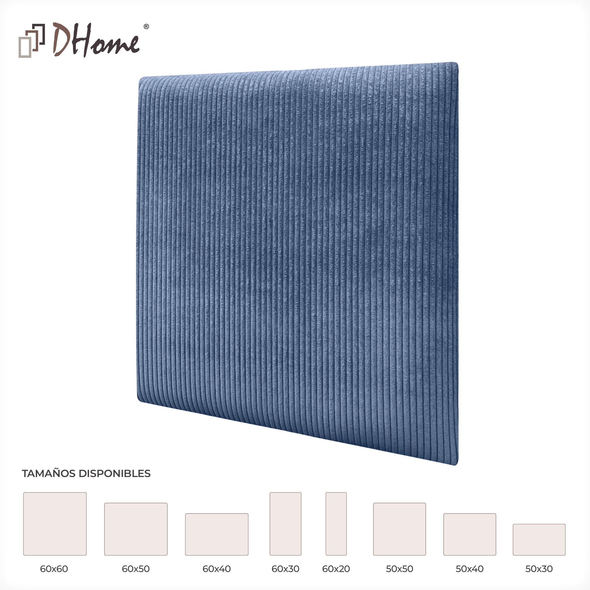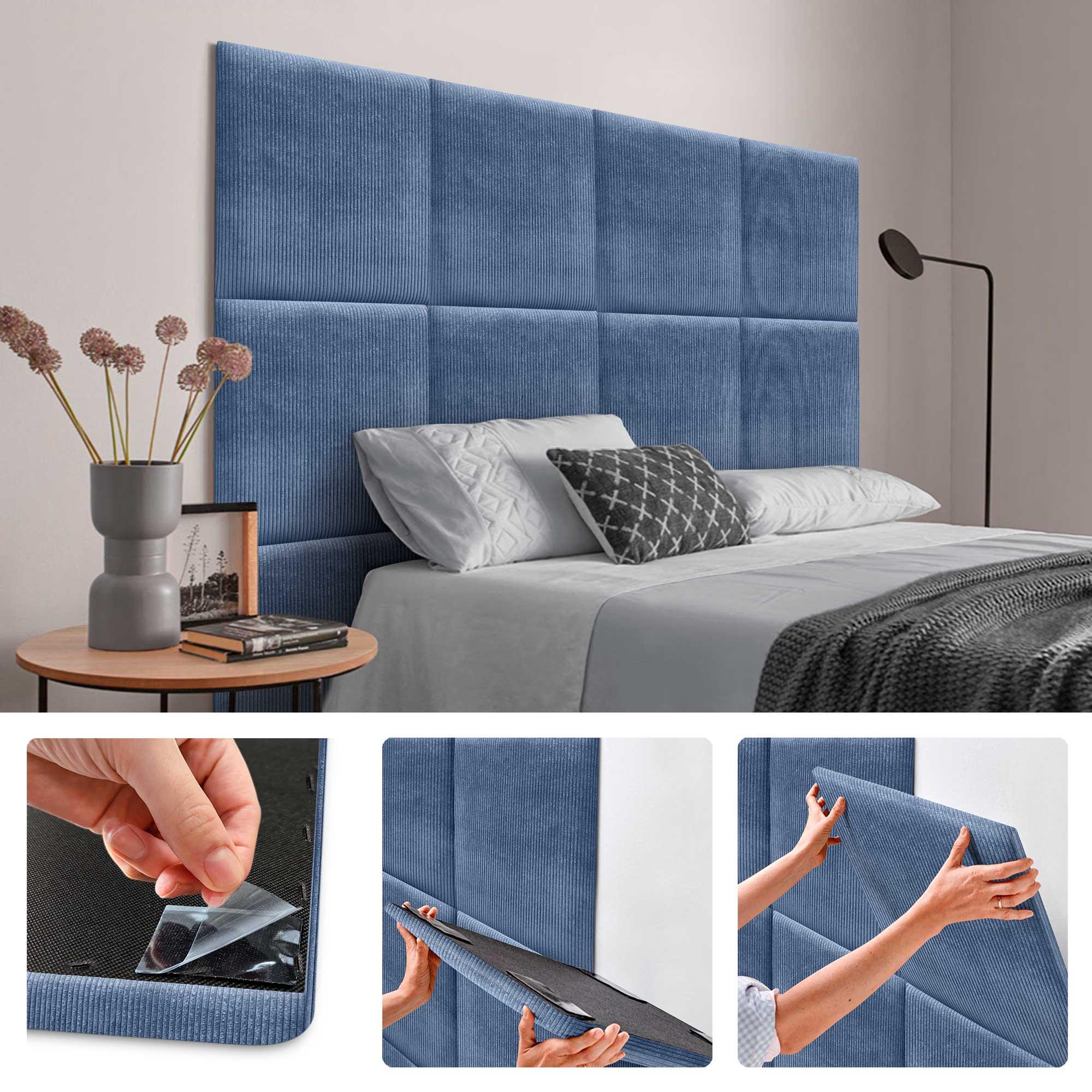 DHOME Juego de 8 Paneles Tapizados de Pana Premium Pack Autoadhesivos para Pared Acústicos Absorbentes Protección Impactos (Azul, 50x50cm, x8)