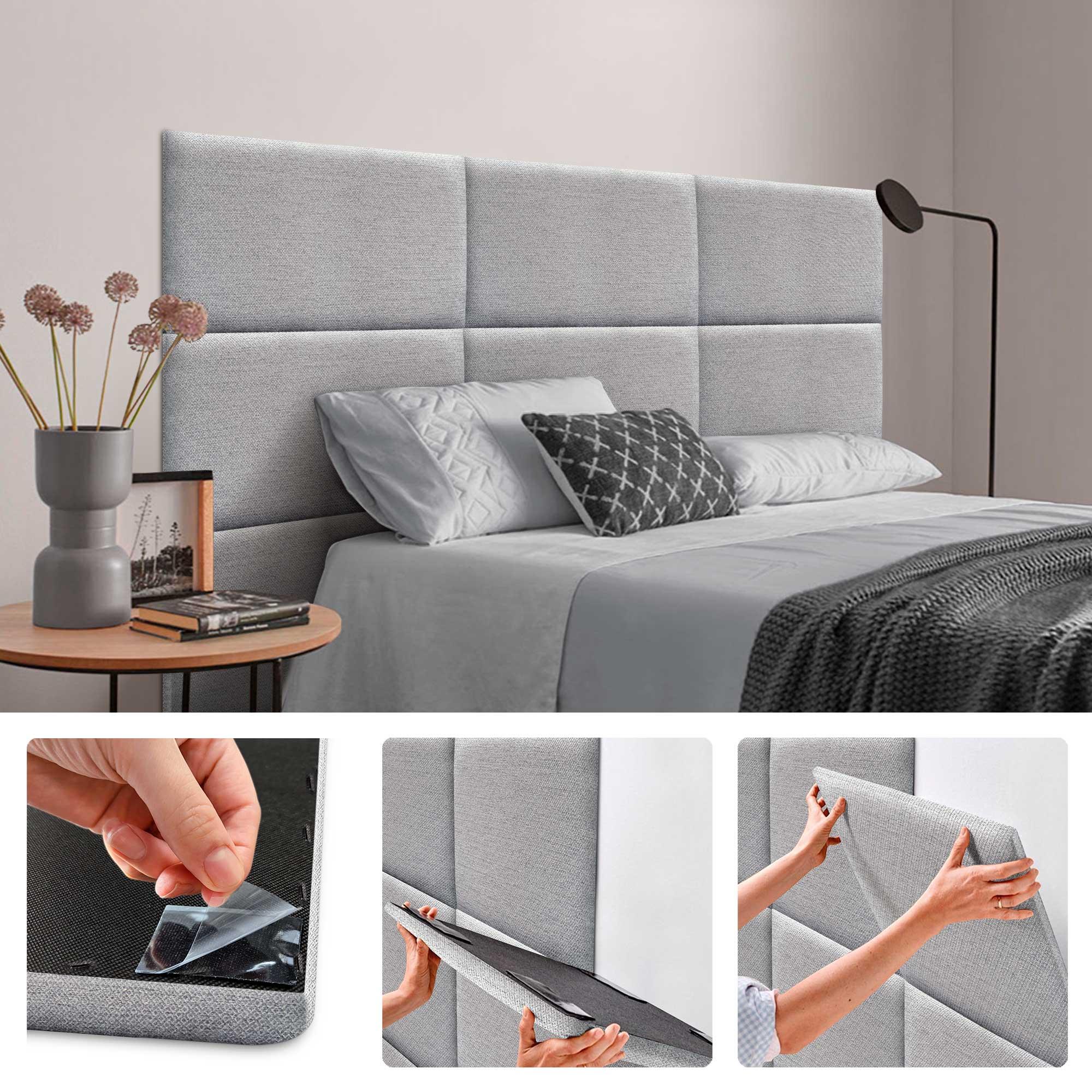 DHOME Paneles Tapizados de Lino Autoadhesivos para Pared Acústicos Absorbentes Protección Impactos Cabeceros Decoración (Gris Claro, 60x50cm)