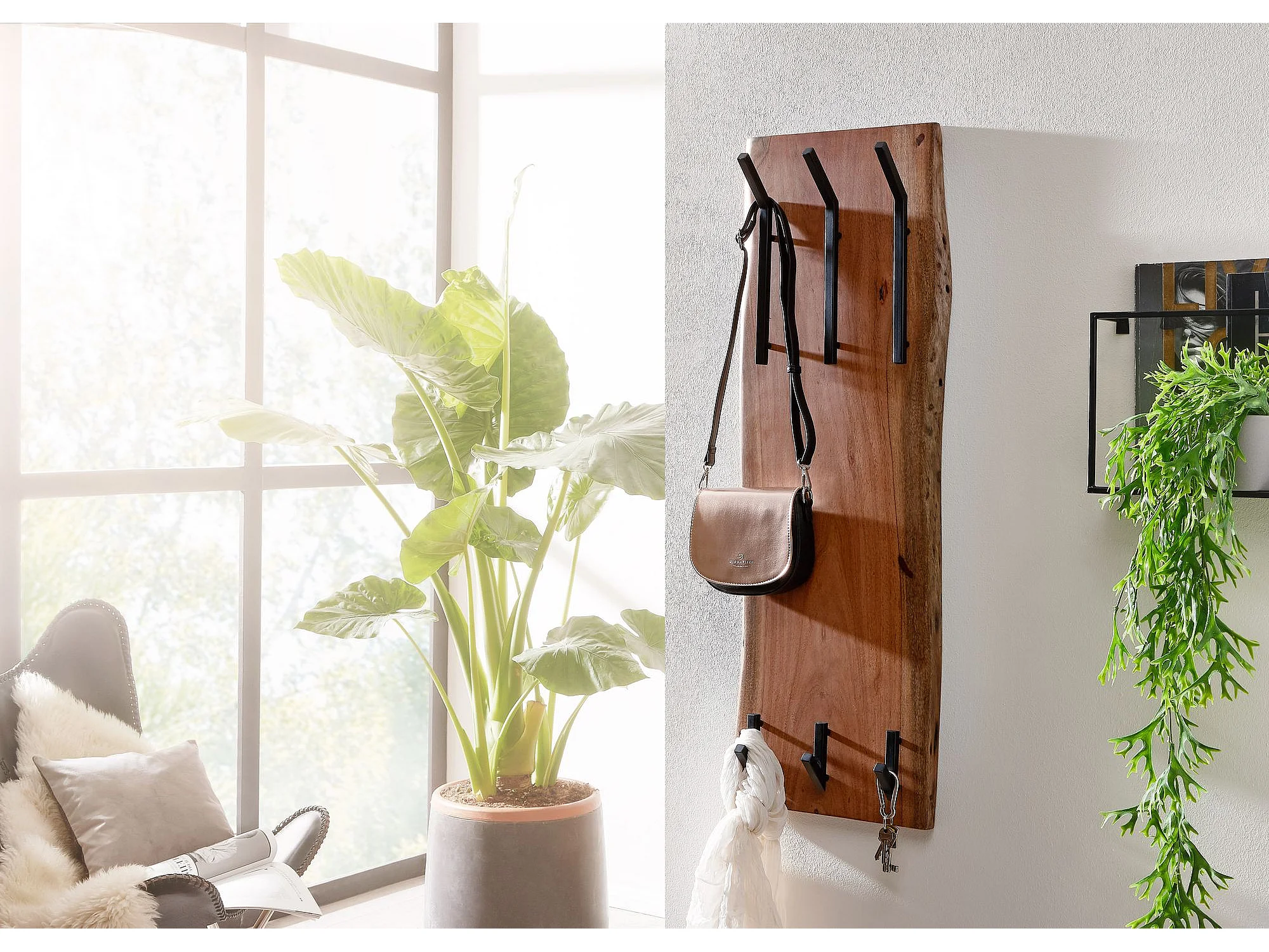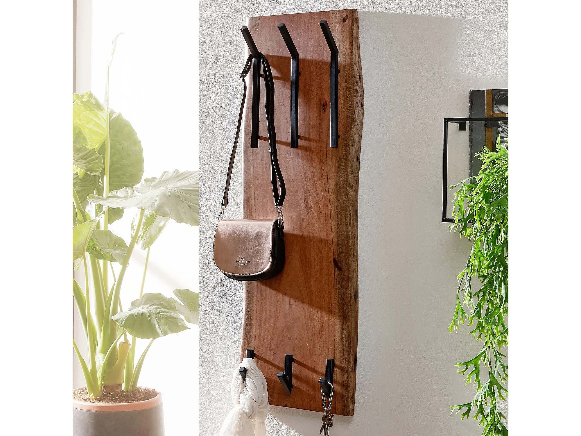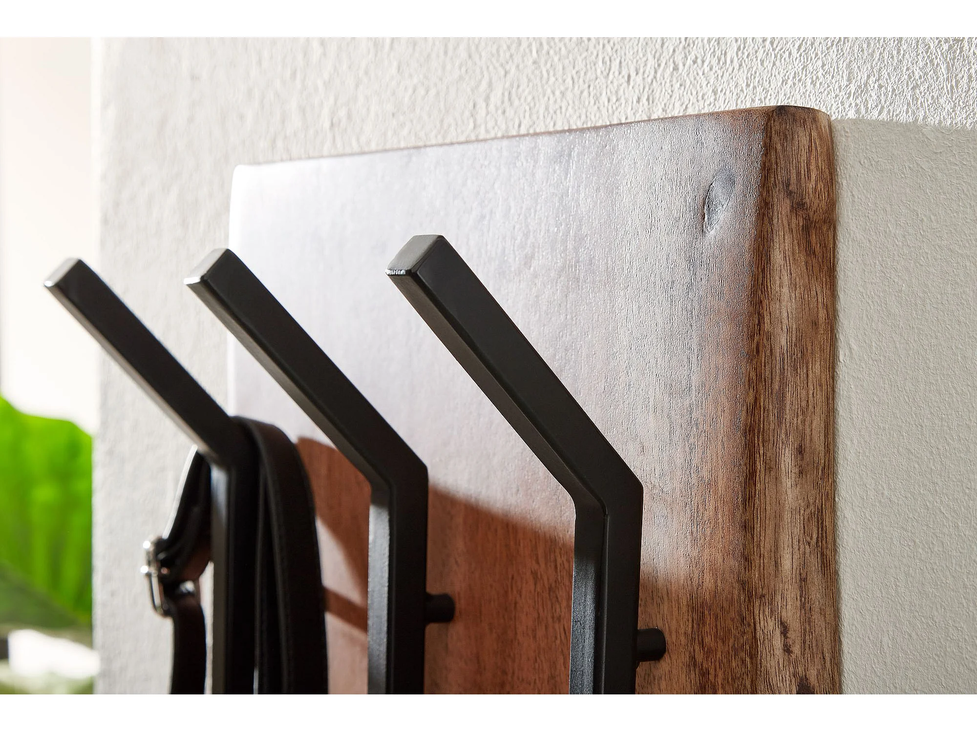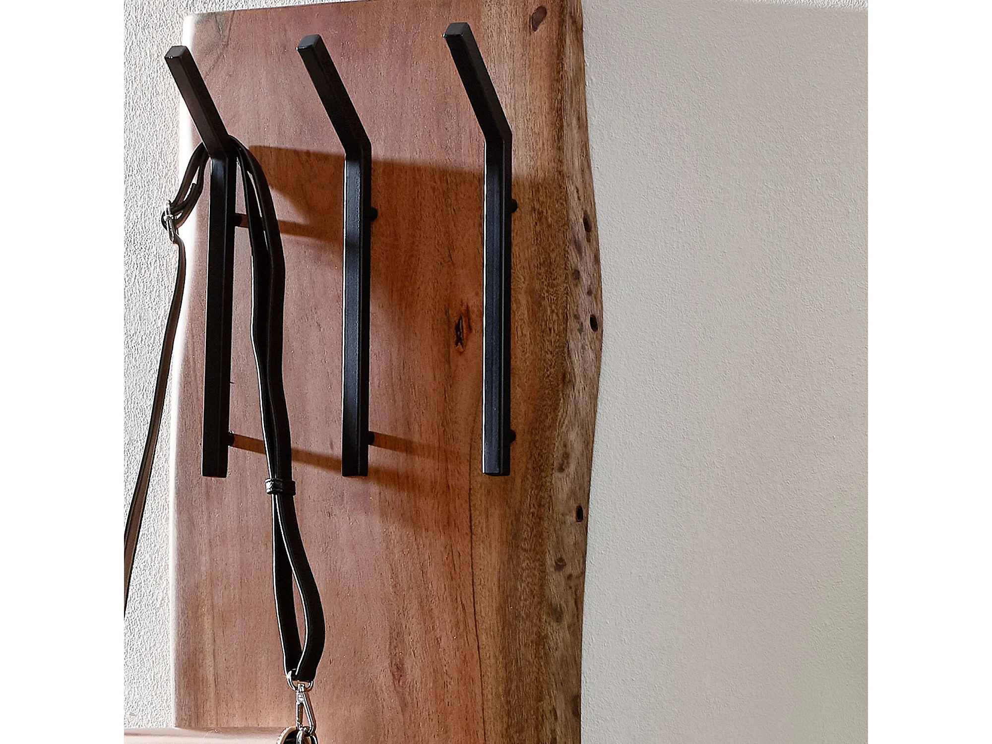 diseño madera maciza de acacia / metal 35,5 x 100 x 11 cm | Perchero de pared de 2 hileras con