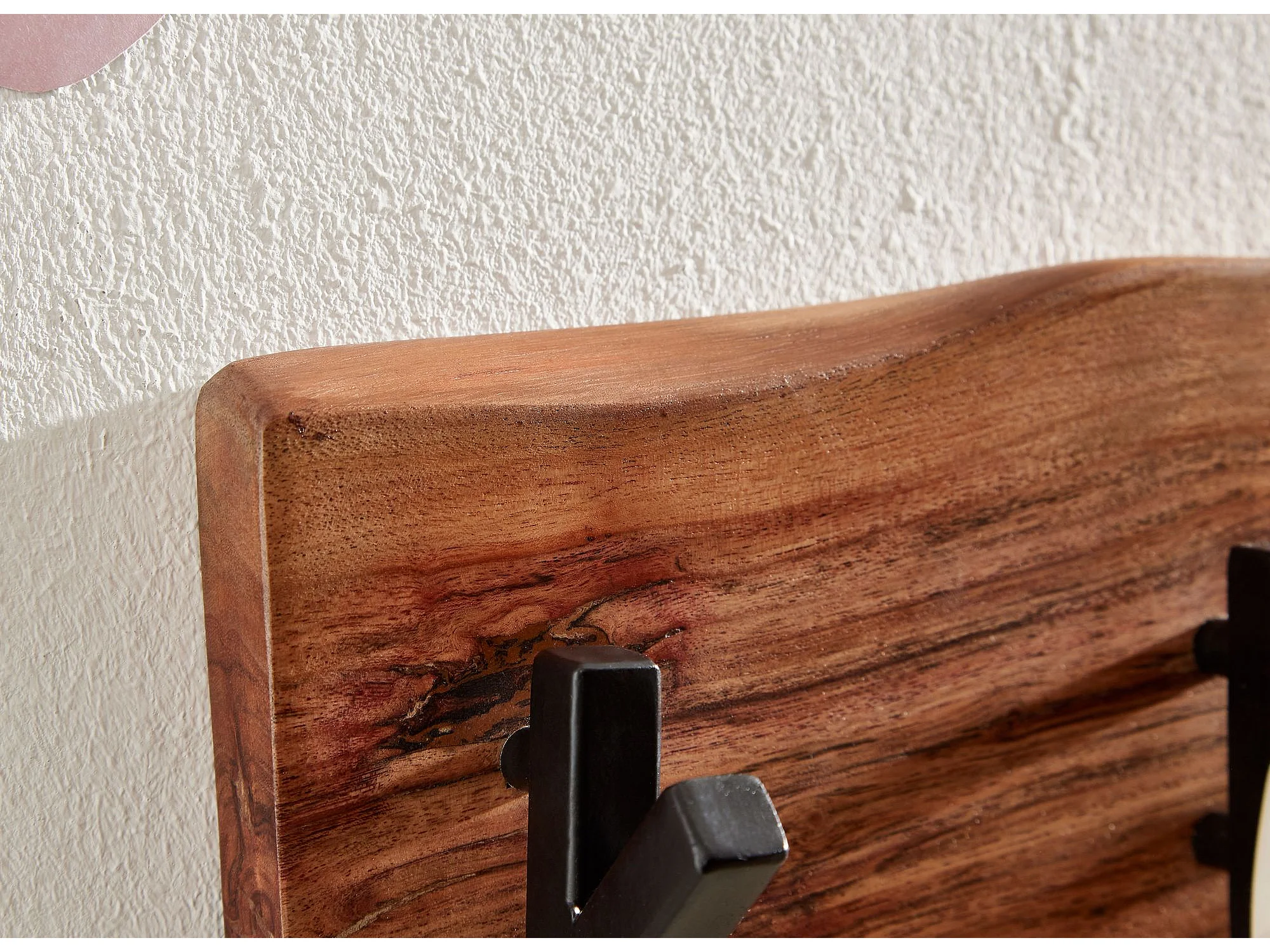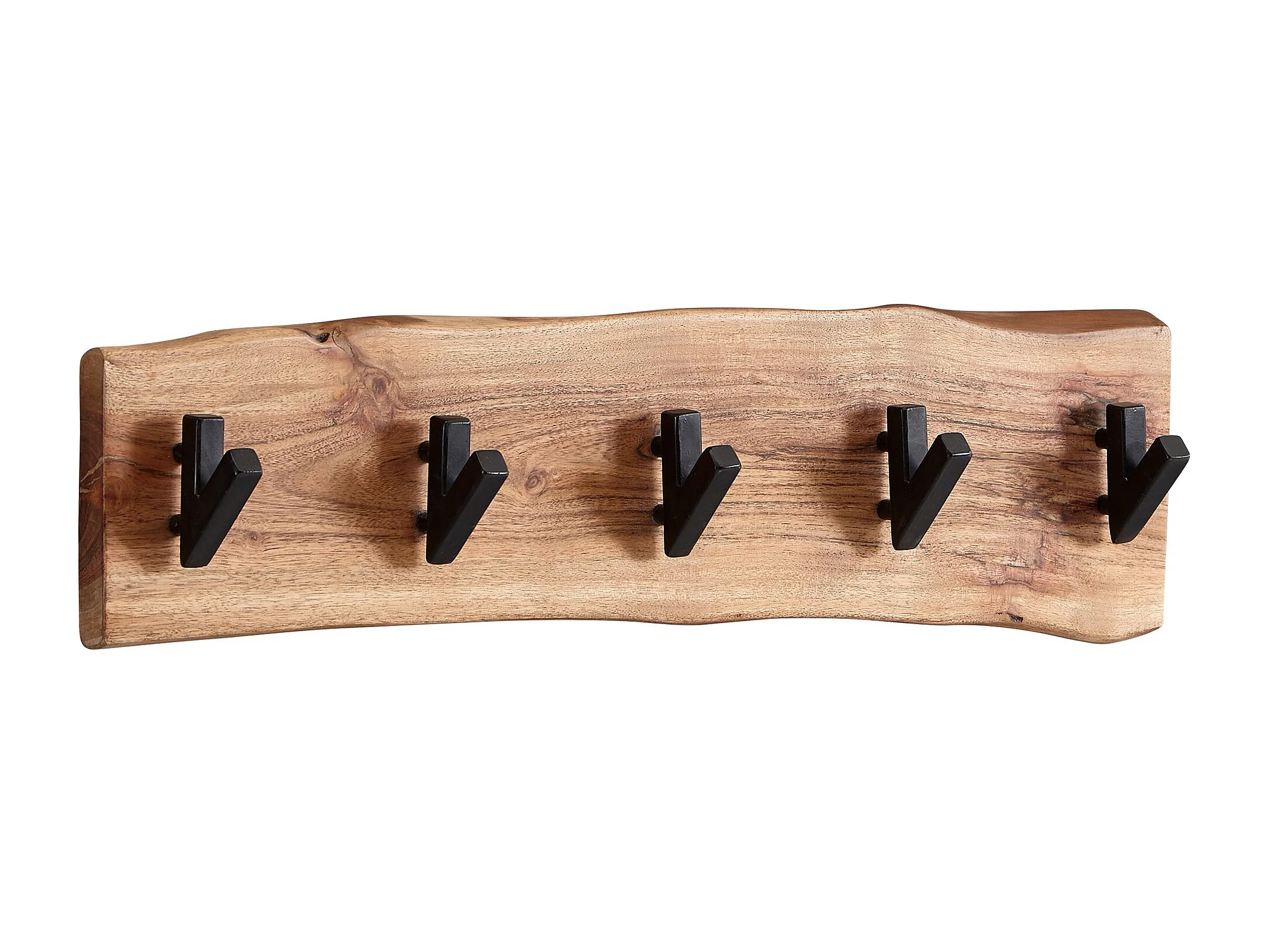 diseño madera maciza de acacia / metal 60 x 17 x 9 cm | Perchero de pared con gancho de carril |