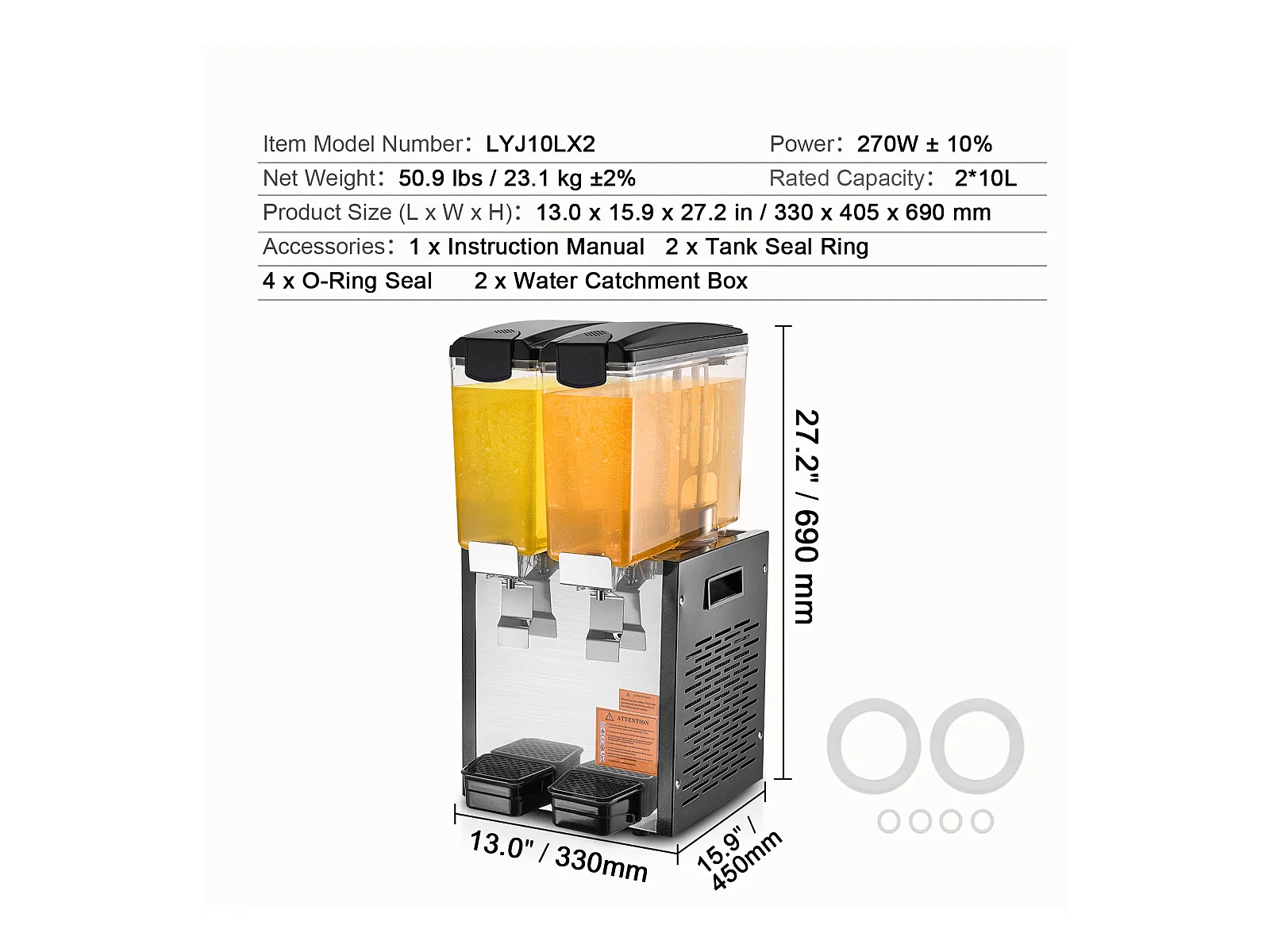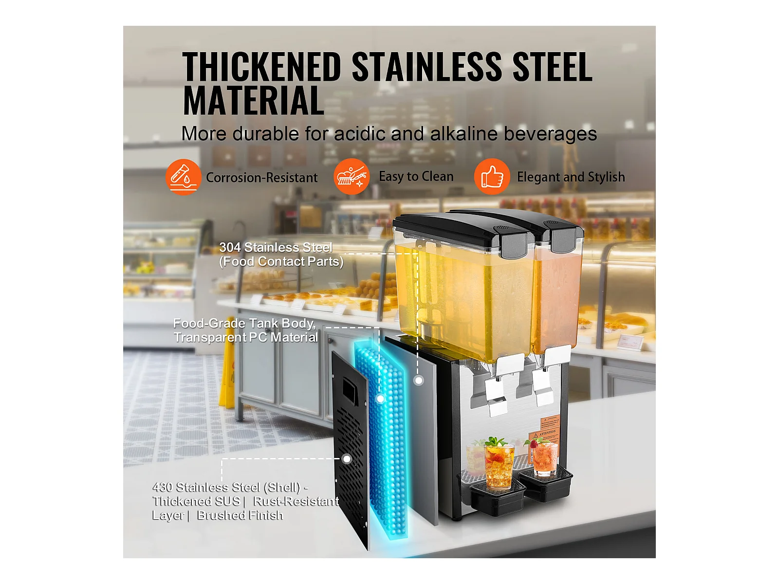 Distribuidor de Bebidas Comerciales SucceBuy 10 L x 2 Depósitos, Distribuidor de Bebidas Heladas y Jugos Fríos