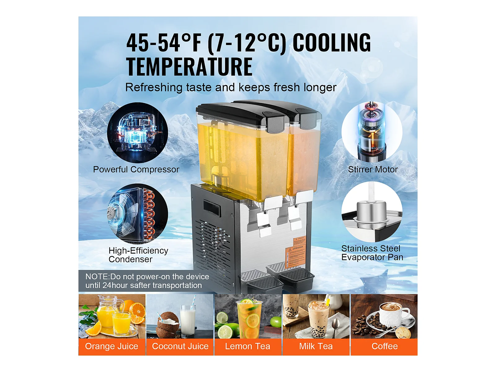 Distribuidor de Bebidas Comerciales SucceBuy 12 L x 2 Depósitos, Distribuidor de Bebidas Heladas y Jugos Fríos