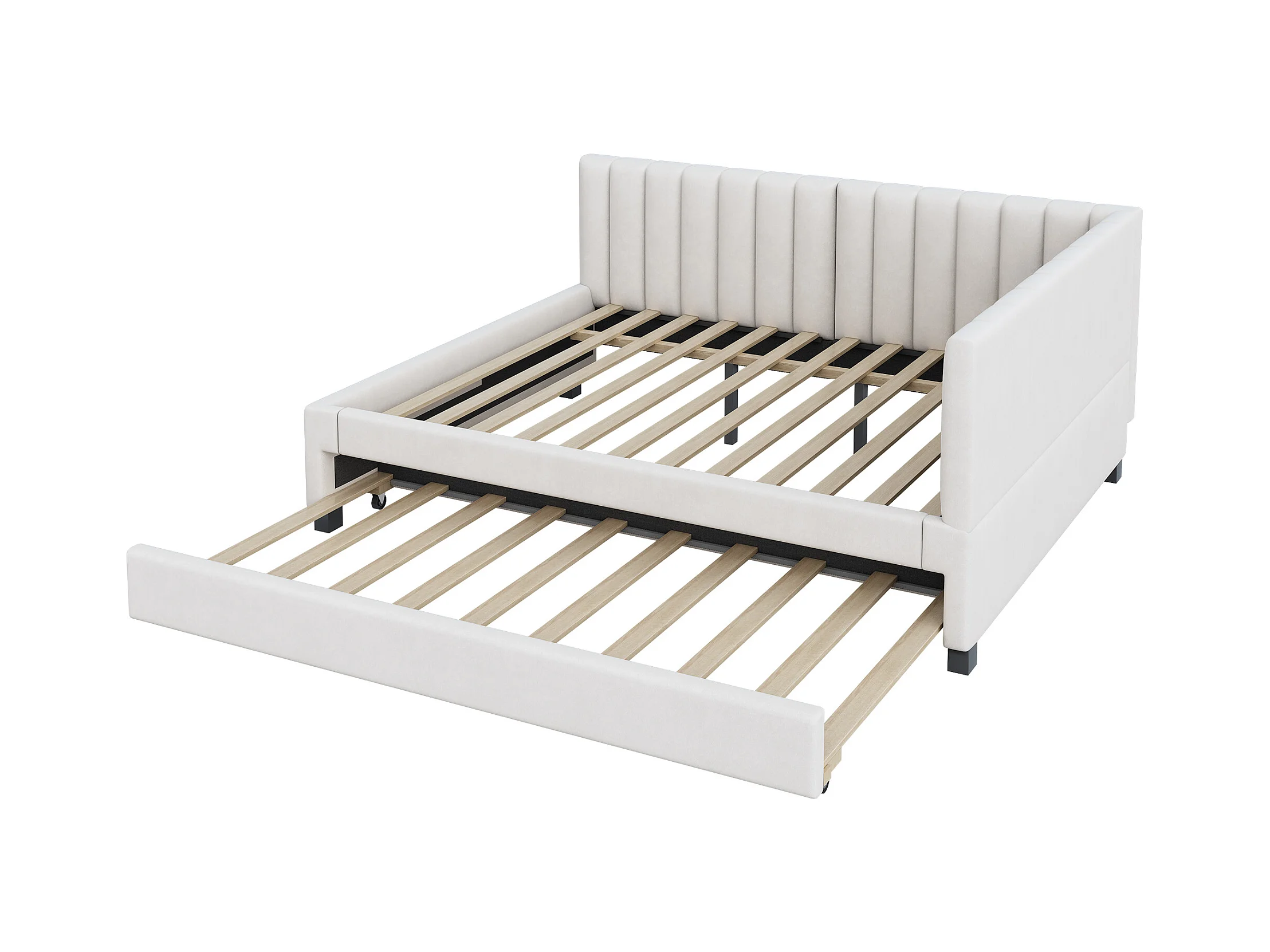 Cama nido tapizada 140x200cm, sofá cama, somier de láminas, cama adulto, terciopelo, Beige