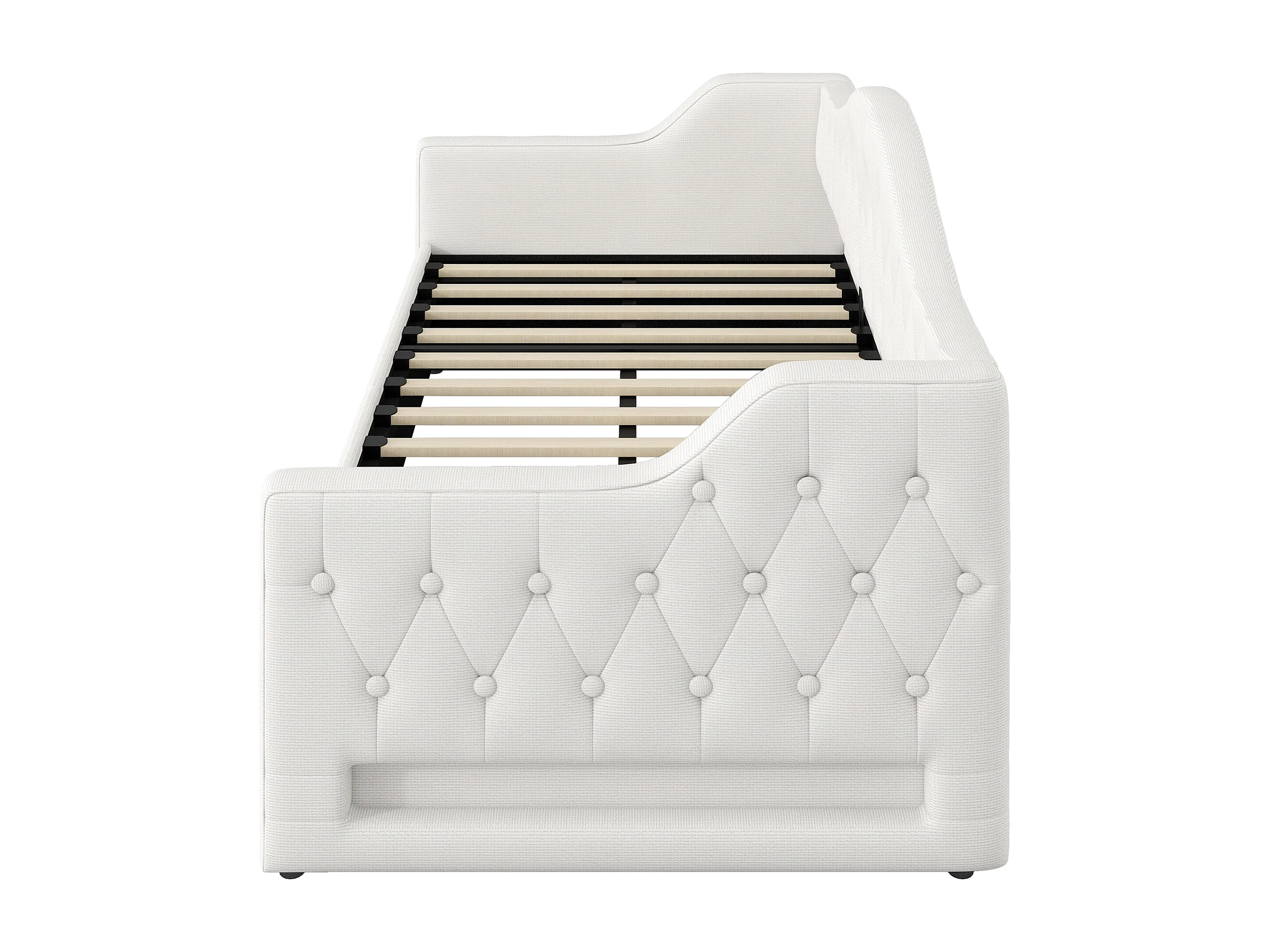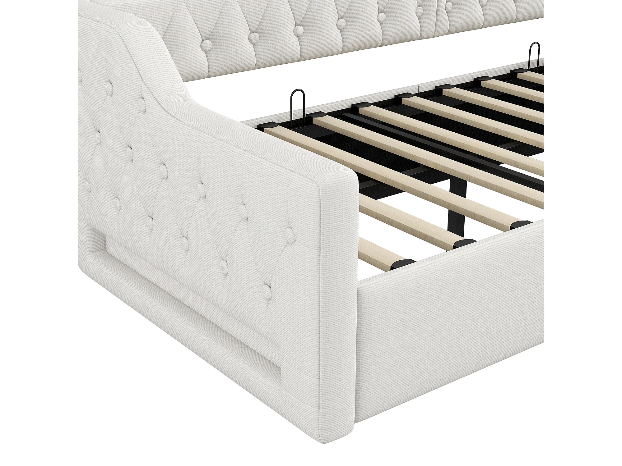 Divano letto 90x200 cm in lino beige - Letto contenitore con illuminazione a LED (materasso non incluso)