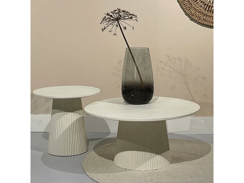 DOLCE-Mesa de centro redonda D50 cm de madera maciza marfil