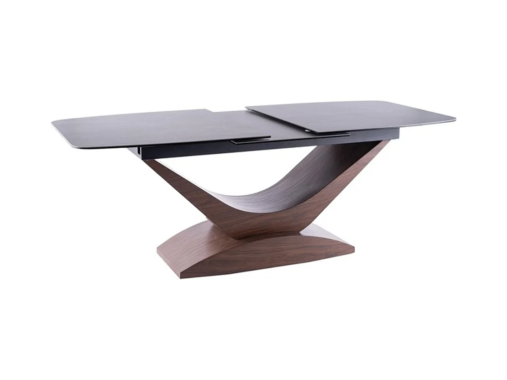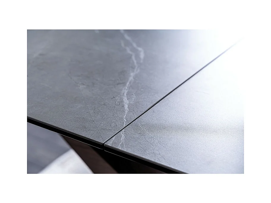 Mesa de cerámica negra, base de metal negro, extensible 120x88-180x88 - BONIFACIO