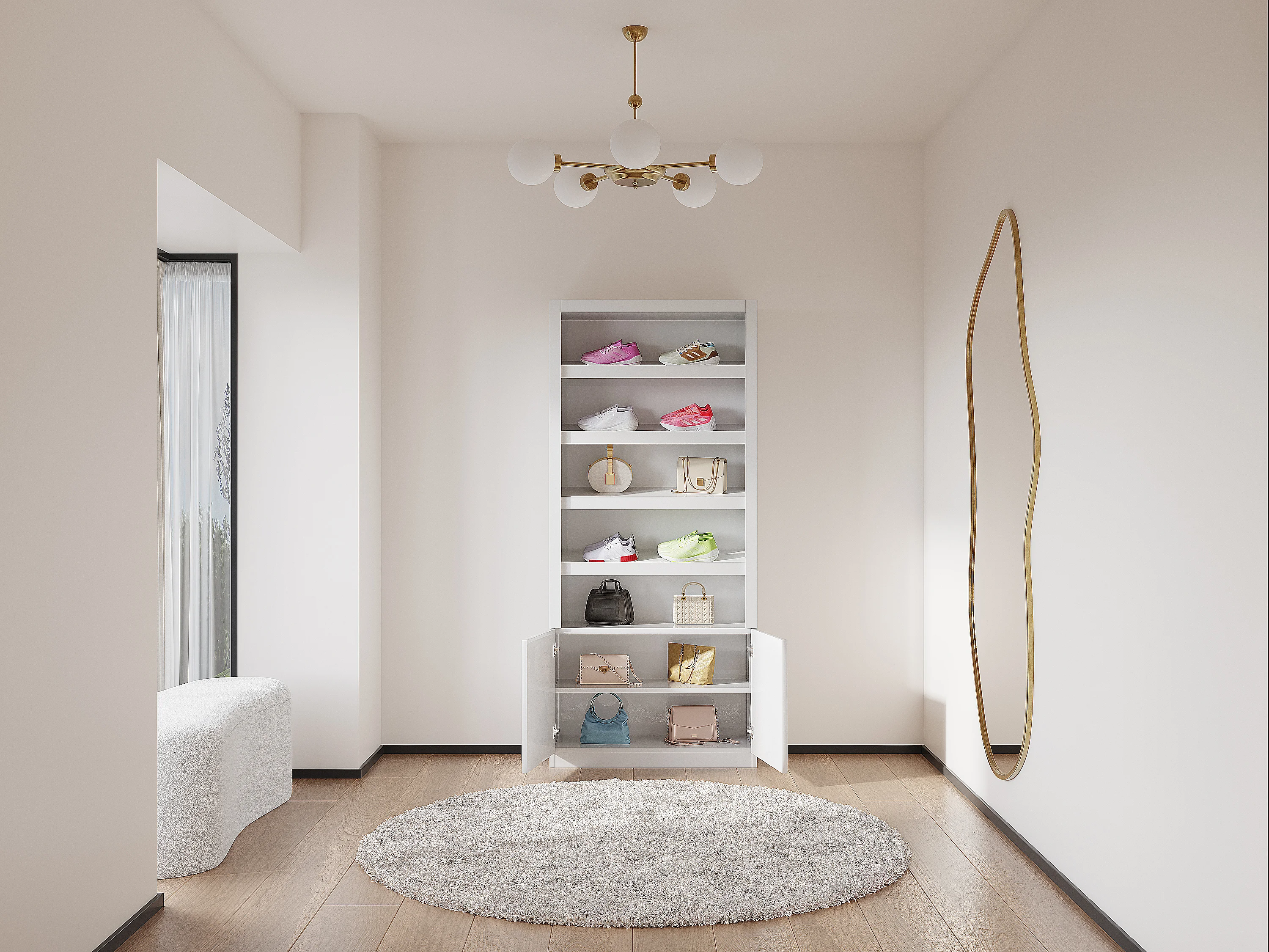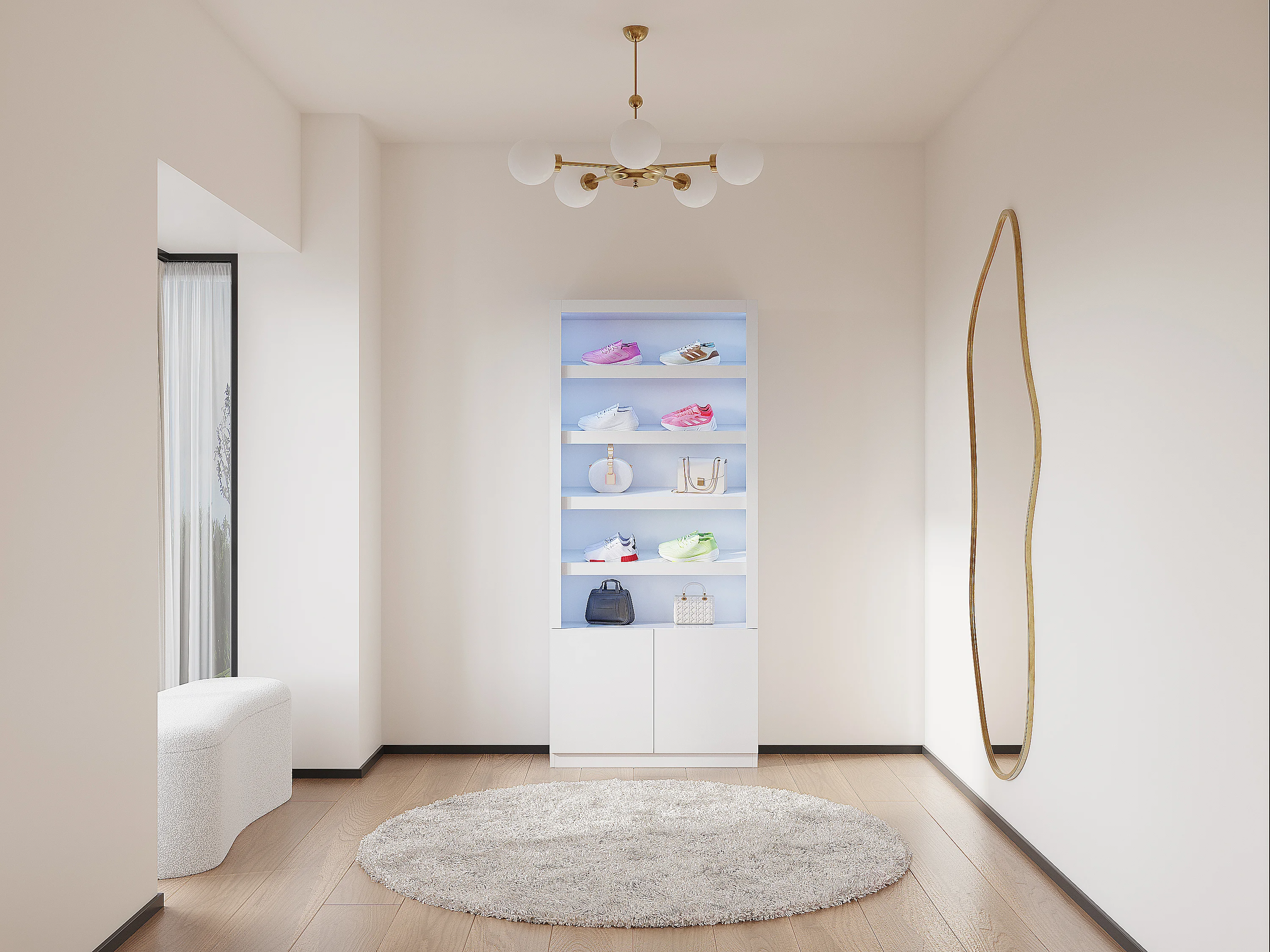 Mueble zapatero de 5 estantes y 2 puertas con luces LED en MDF - Blanco - DOLMINA
