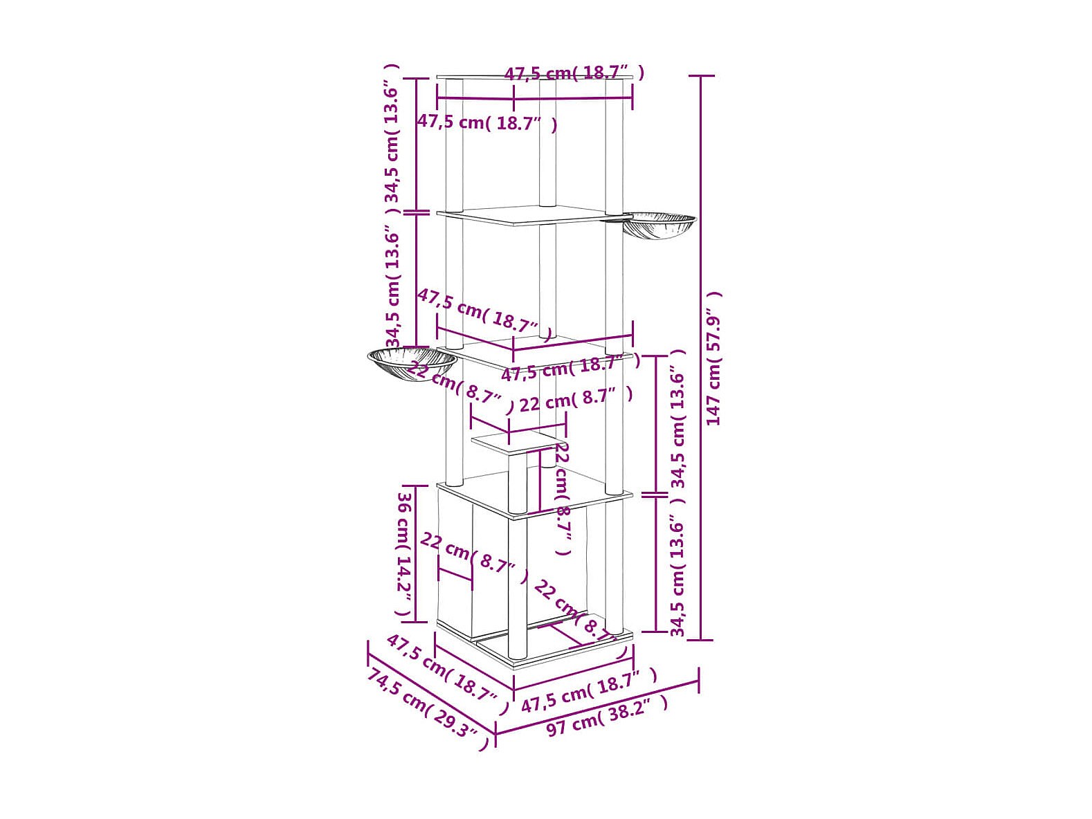 Rascador para gatos con postes de sisal gris oscuro 147 cm ES384787