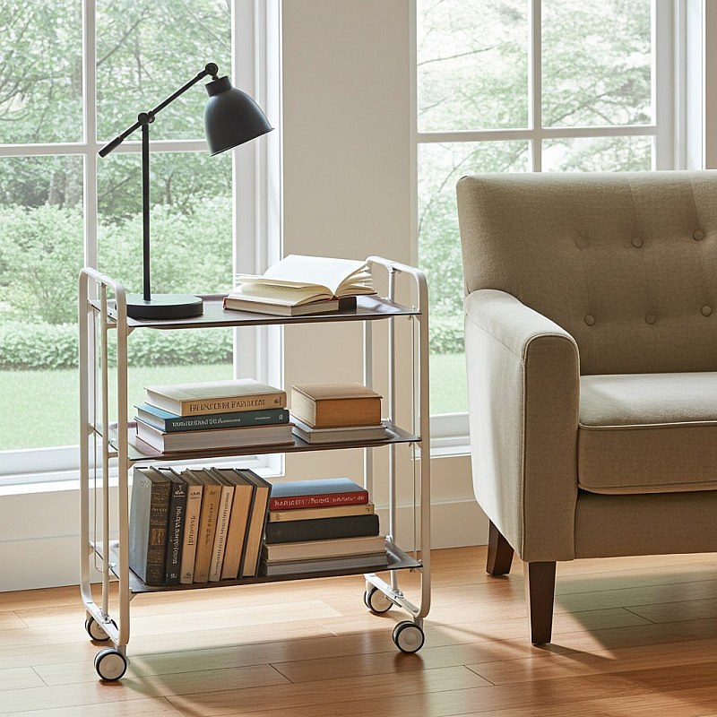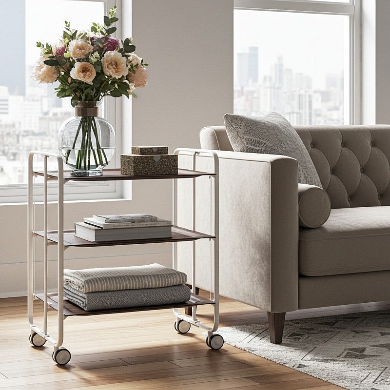DON HIERRO - Carrito auxiliar plegable BAUHAUS con ruedas – Estructura metálica blanca, 3 niveles-