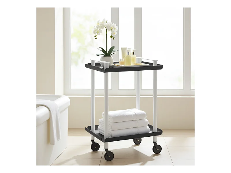 DON HIERRO - Carrito auxiliar LEKY, armazón blanco, 2 estantes. Multifuncional, práctico y decorativo-
