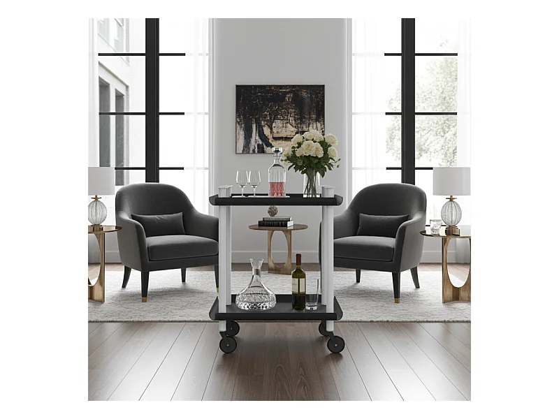 Carrito auxiliar plegable con ruedas - Estructura metálica negra, 2 estantes laminados negros – 72*66*43 cm - BAUHAUS