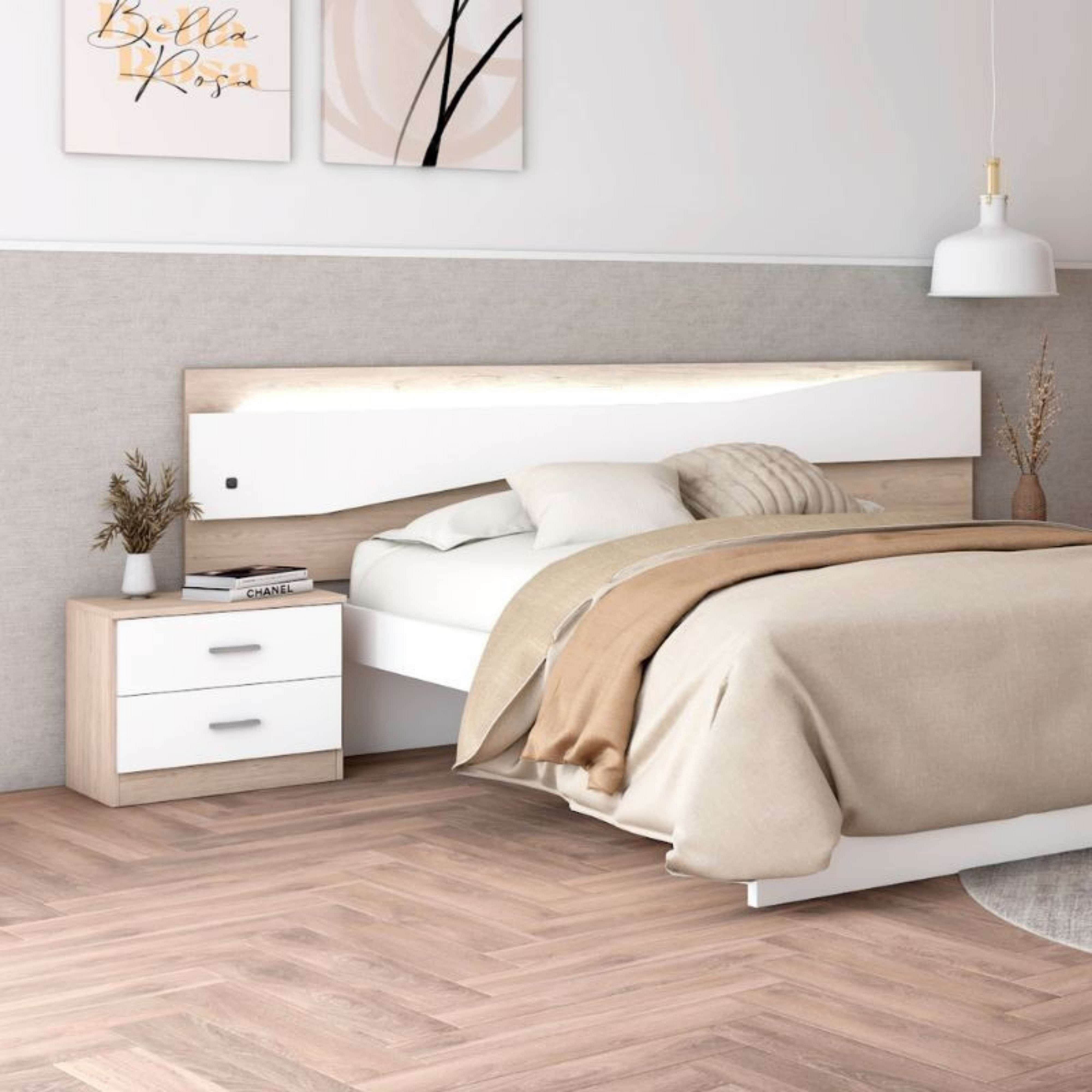 Dormitorio Completo Matrimonio Sahara/Blanco Moderno 150 cm