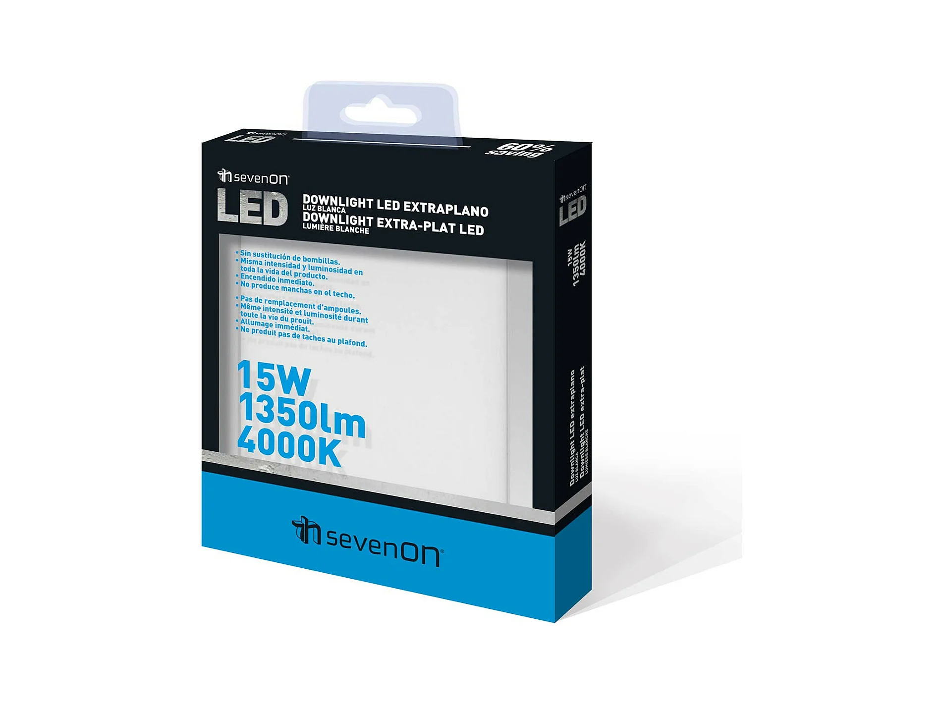 Downlight LED Ultraslim Empotrable Cuadrado 15W 1100lm 20.5x20.5cm 4000K Aluminio 7hSevenOn LED