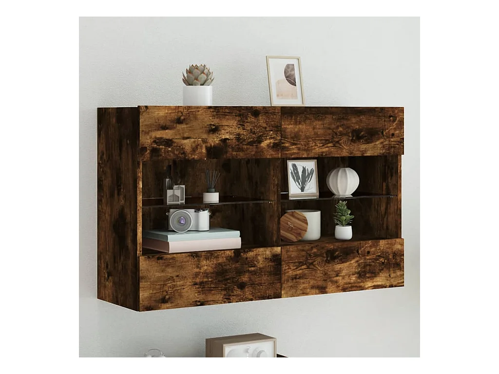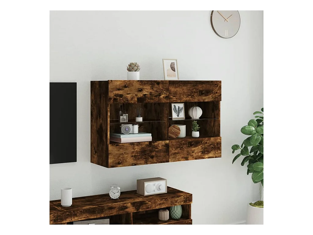 DuBois Mueble TV de pared con luces LED roble ahumado 58,5x30x60,5 cm