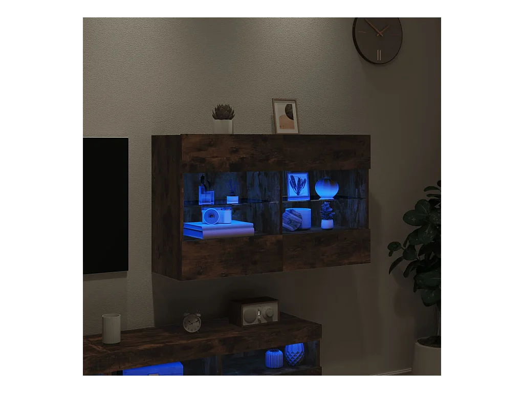 DuBois Mueble TV de pared con luces LED roble ahumado 78,5x30x60,5 cm