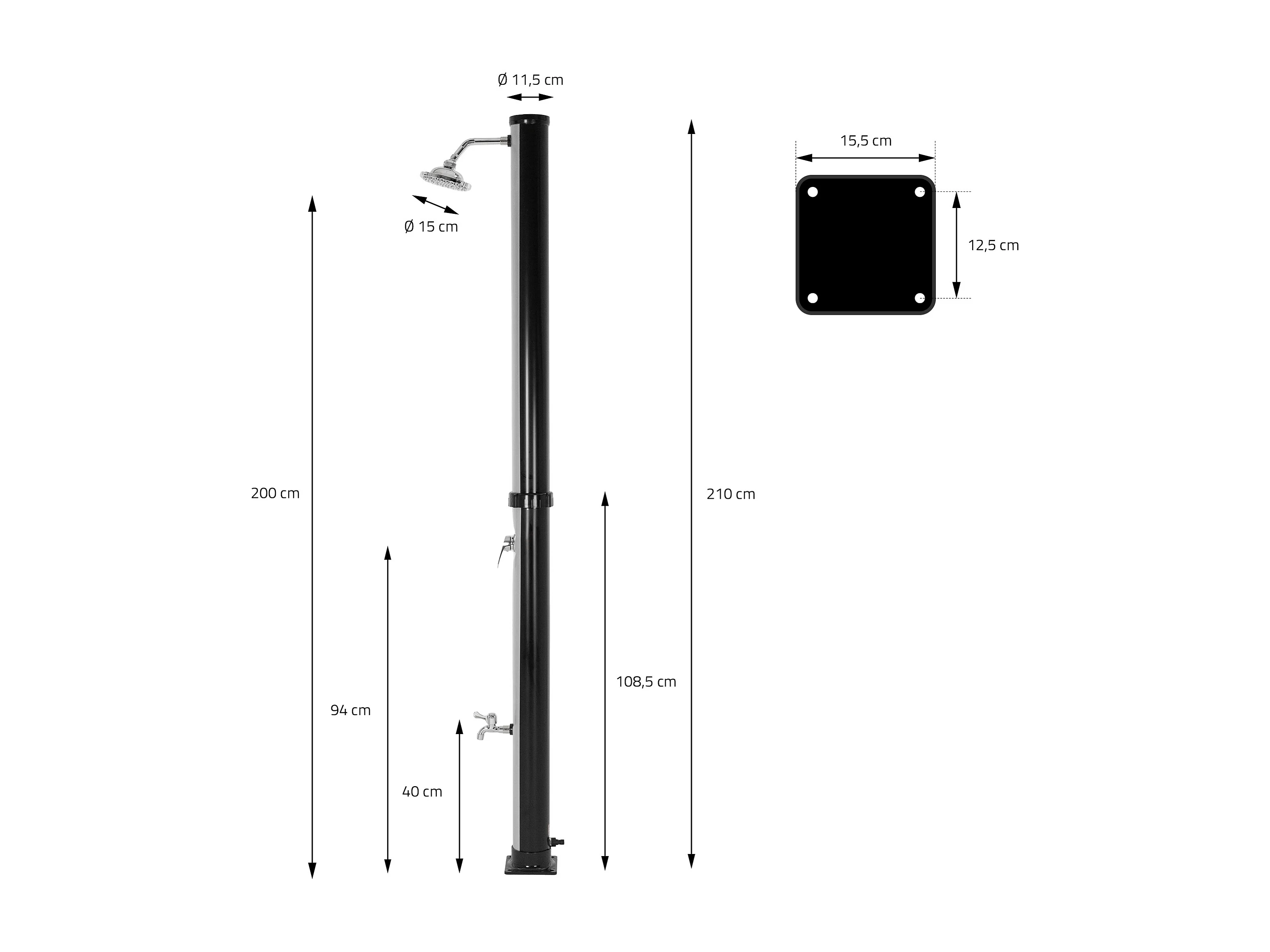 Ducha solar de jardín 20 L negro/plata cabezal ajustable grifo piscina camping