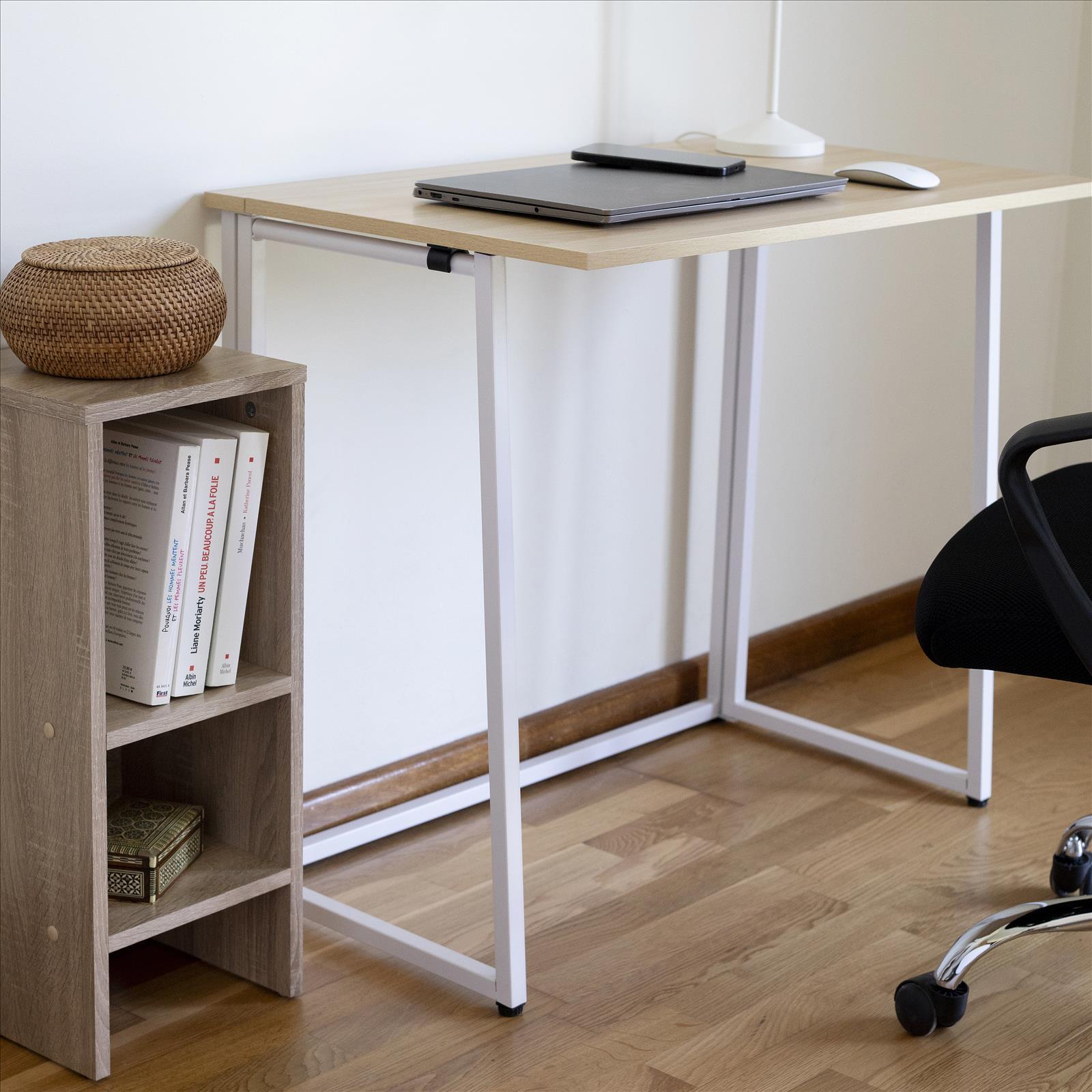 Mesa oficina o despacho patas metálicas en acabado roble/blanco 76 cm(alto)100 cm(ancho)5