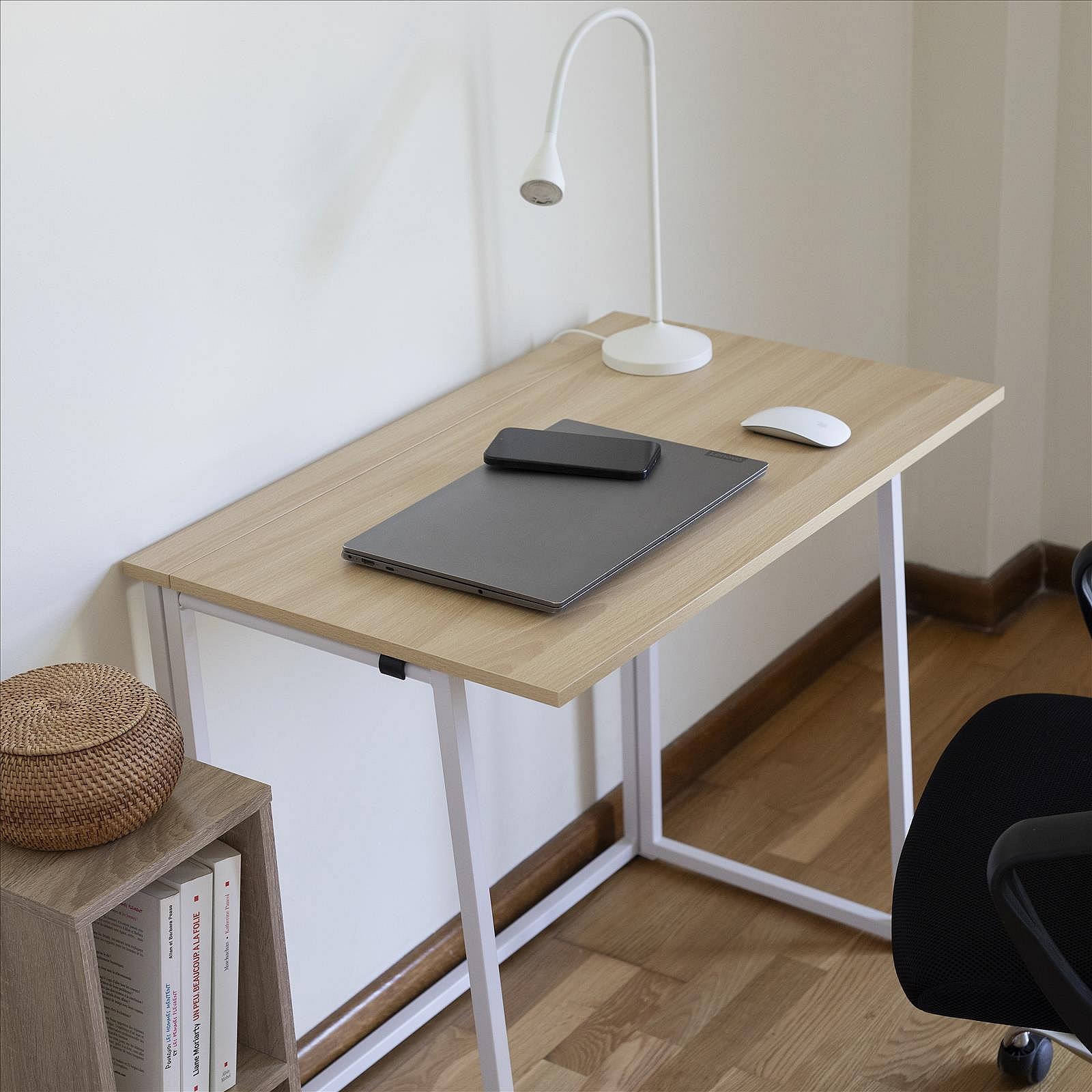 Mesa oficina o despacho patas metálicas en acabado roble/blanco 76 cm(alto)100 cm(ancho)5