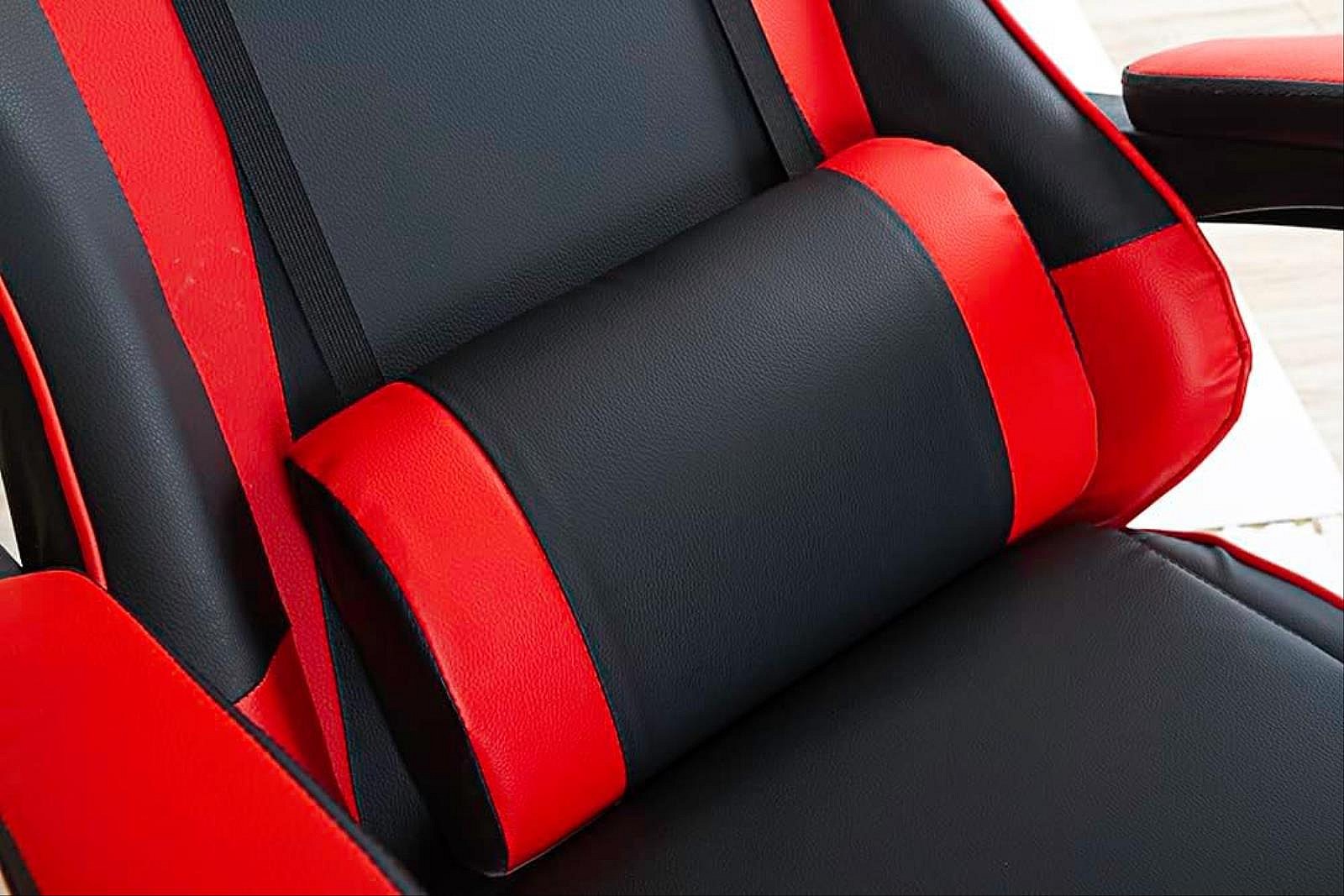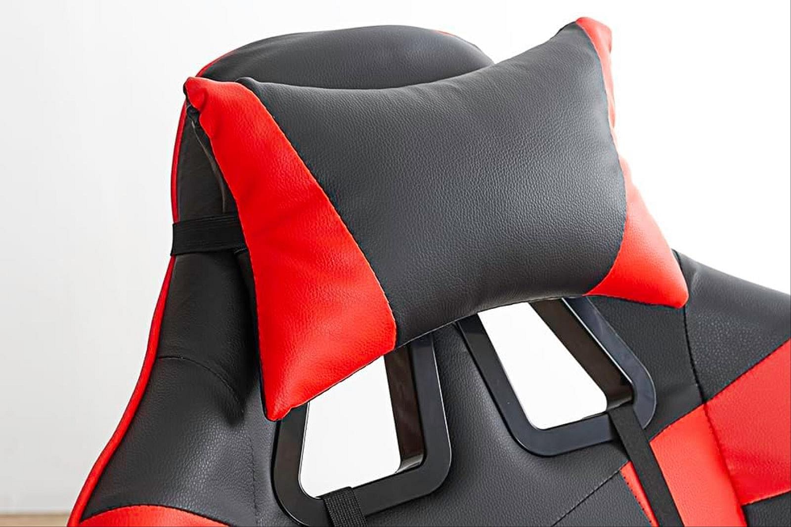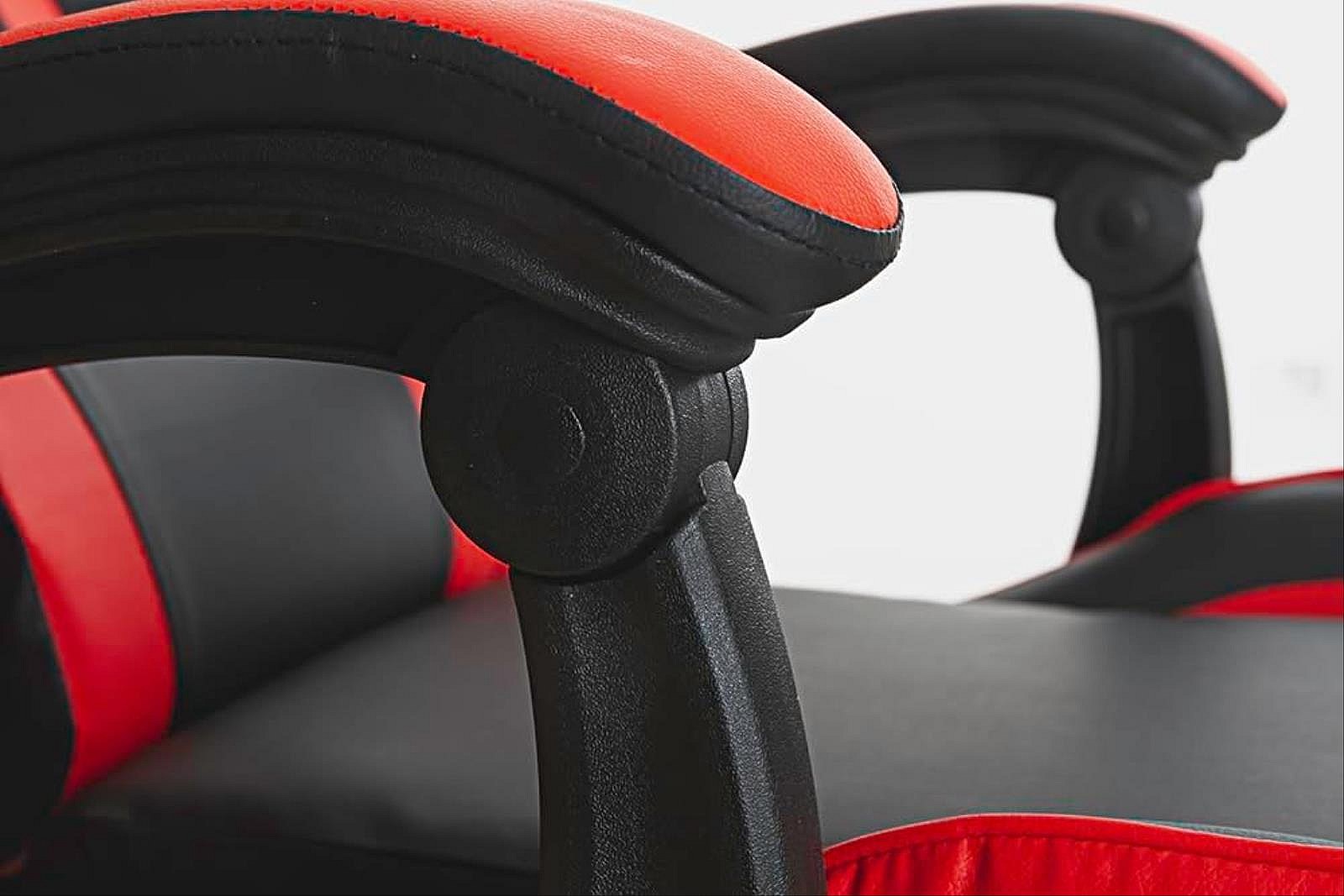 Silla gaming con reposapiés cuero sintético rojo y negro ES815174