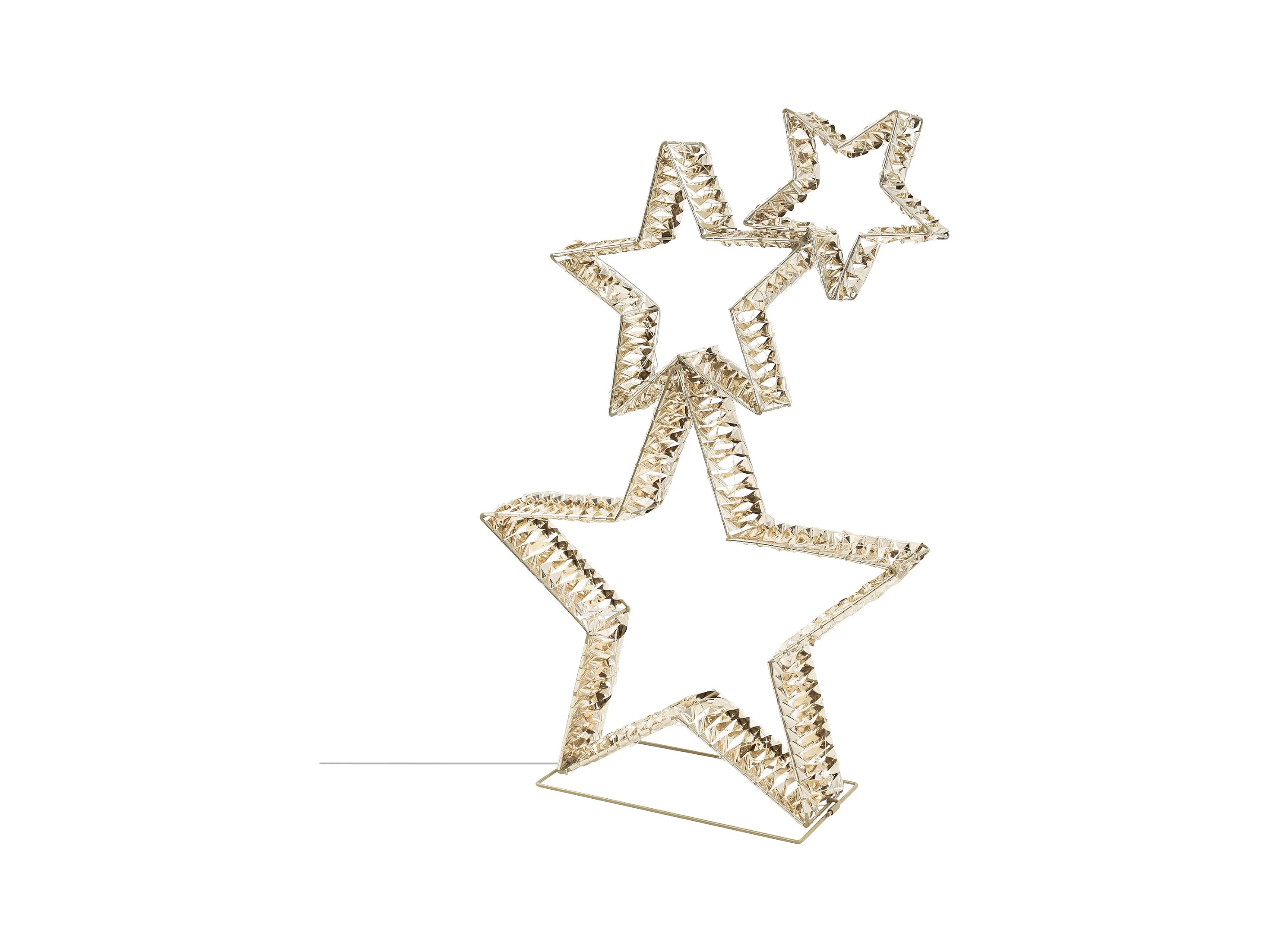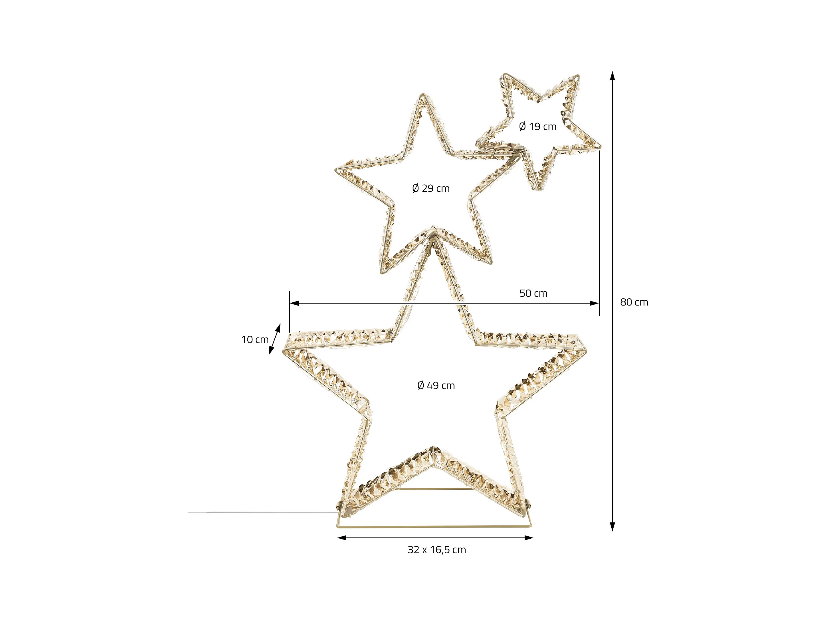 ECD Germany Decoración navideña 3 estrellas entrelazadas 80cm doradas 350 led luz cálida figura alambre con base adorno exterior IP44 y temporizador
