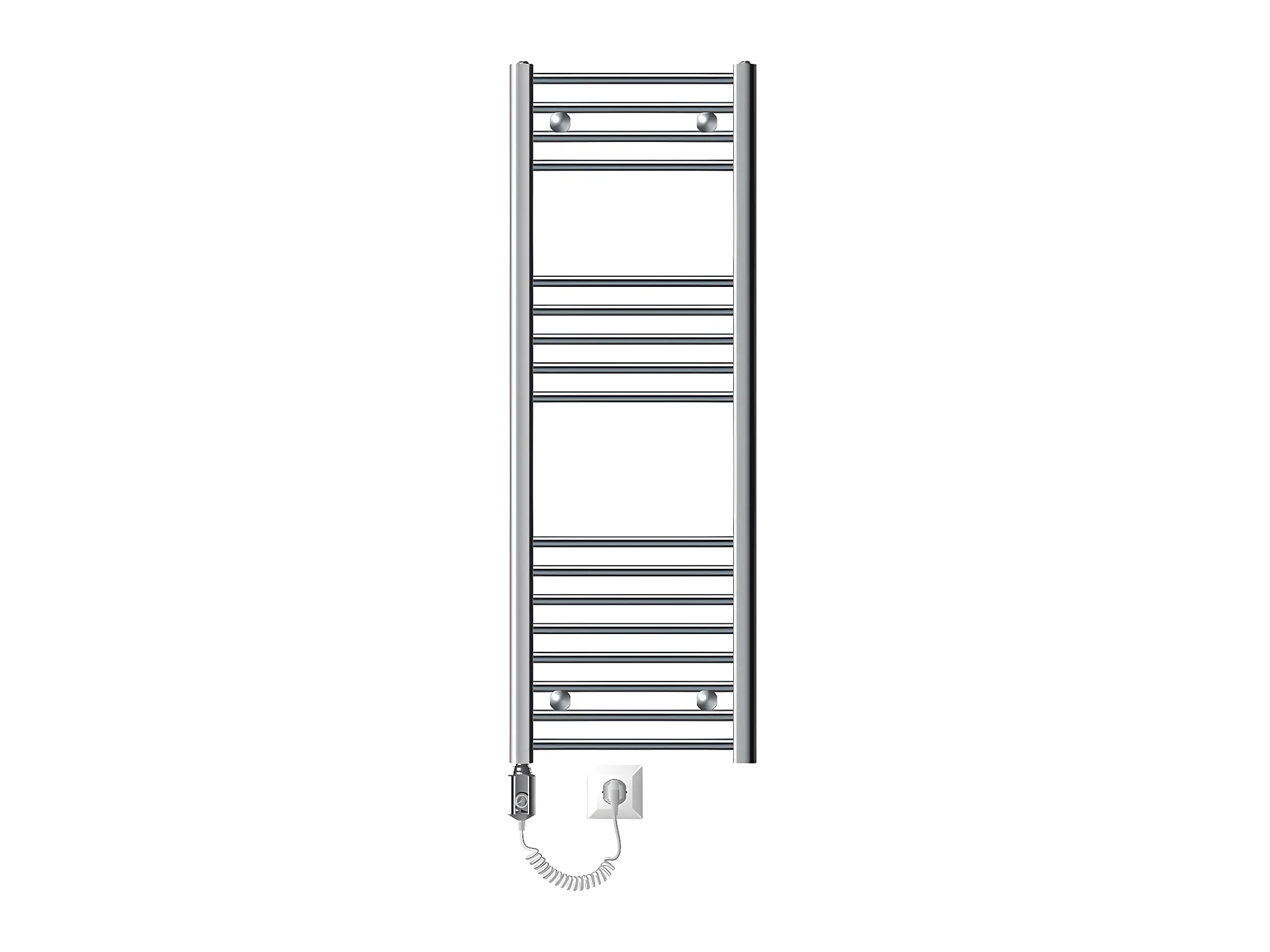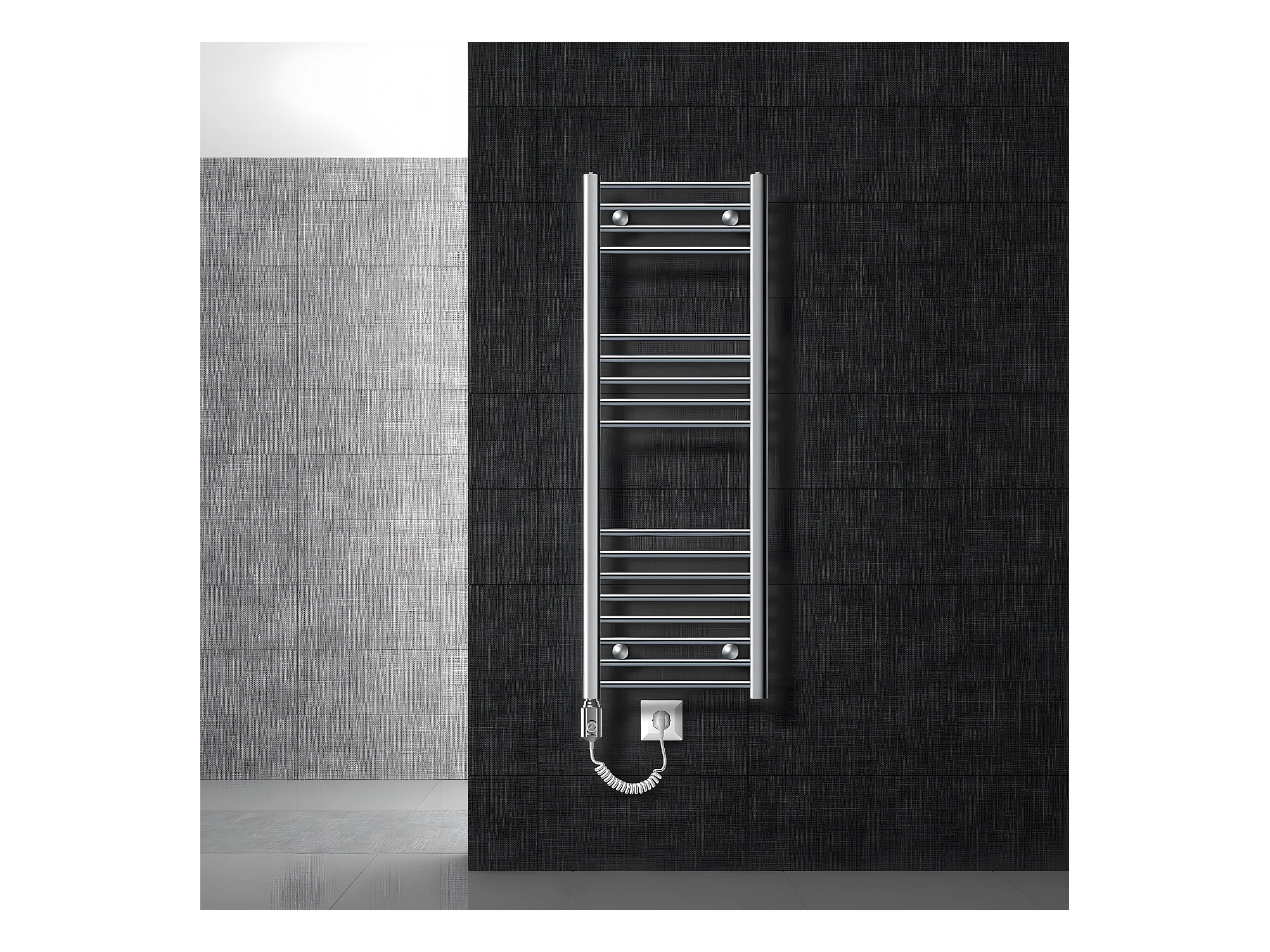 Radiador toallero eléctrico cromo 600 x 1600mm con elemento calefactor 1200W