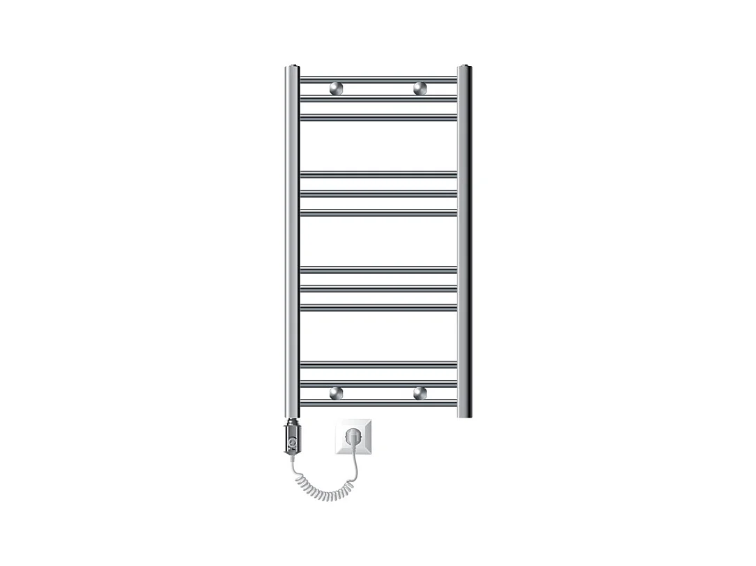 Radiador de baño eléctrico 300W, 500 x 800 mm, cromado, recto con conexión