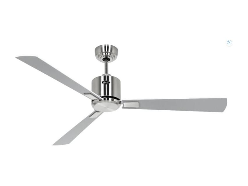 eco neo III 132 ventilador wifi con cuerpo de acero cepillado y aspas blancas y grises, sin luz, casafan