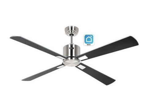 CasaFan ECO NEO III 132, ventilador de techo de bajo consumo con WiFi, Ø 132 cm, carcasa de acero, 4 aspas reversibles (opcionalmente montables 2, 3, 4), 100-240 V 50-60 Hz, motor DC/EC 2,3-27 W, incl. mando a distancia inalámbrico (motor de 6 niveles, adelante/atrás - verano/invierno -, temporizador de apagado automático, luz encendida/apagada/DIMM) y soporte de pared, nivel de ralentización, velocidad máxima 30-185 rpm, incl. 2 barras de techo (150 y 80 mm), distancia del techo a la puerta: 360 mm (290 mm con barra corta, 270 mm con barra acortada), instalación en pendientes de hasta 23°, motor y puerta equilibrados, para habitaciones de hasta 25 m². Accesorios disponibles: luminarias, puertas de repuesto y barras de techo más largas. IP20 Dimensiones: diámetro 132 cm, altura 36 cm