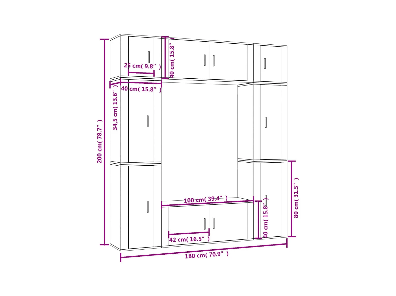 Clarion Set de muebles de TV 8 pzas madera contrachapada roble ahumado