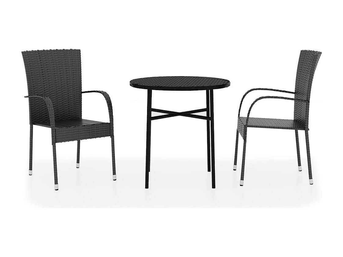 Eglantine Juego de comedor para jardín 3 piezas ratán sintético negro