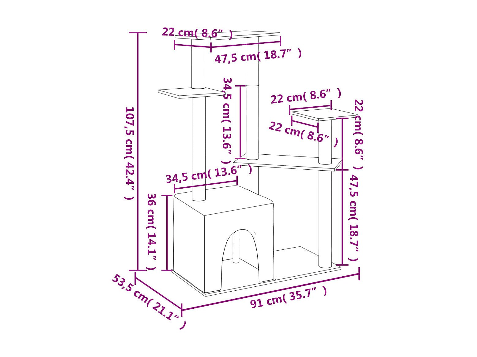 Eirisse Rascador para gatos con postes de sisal gris claro 107,5 cm