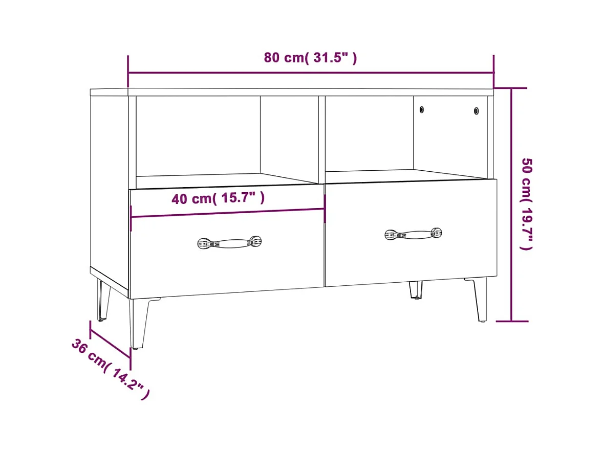 Elben Mueble para TV madera contrachapada negro 80x36x50 cm