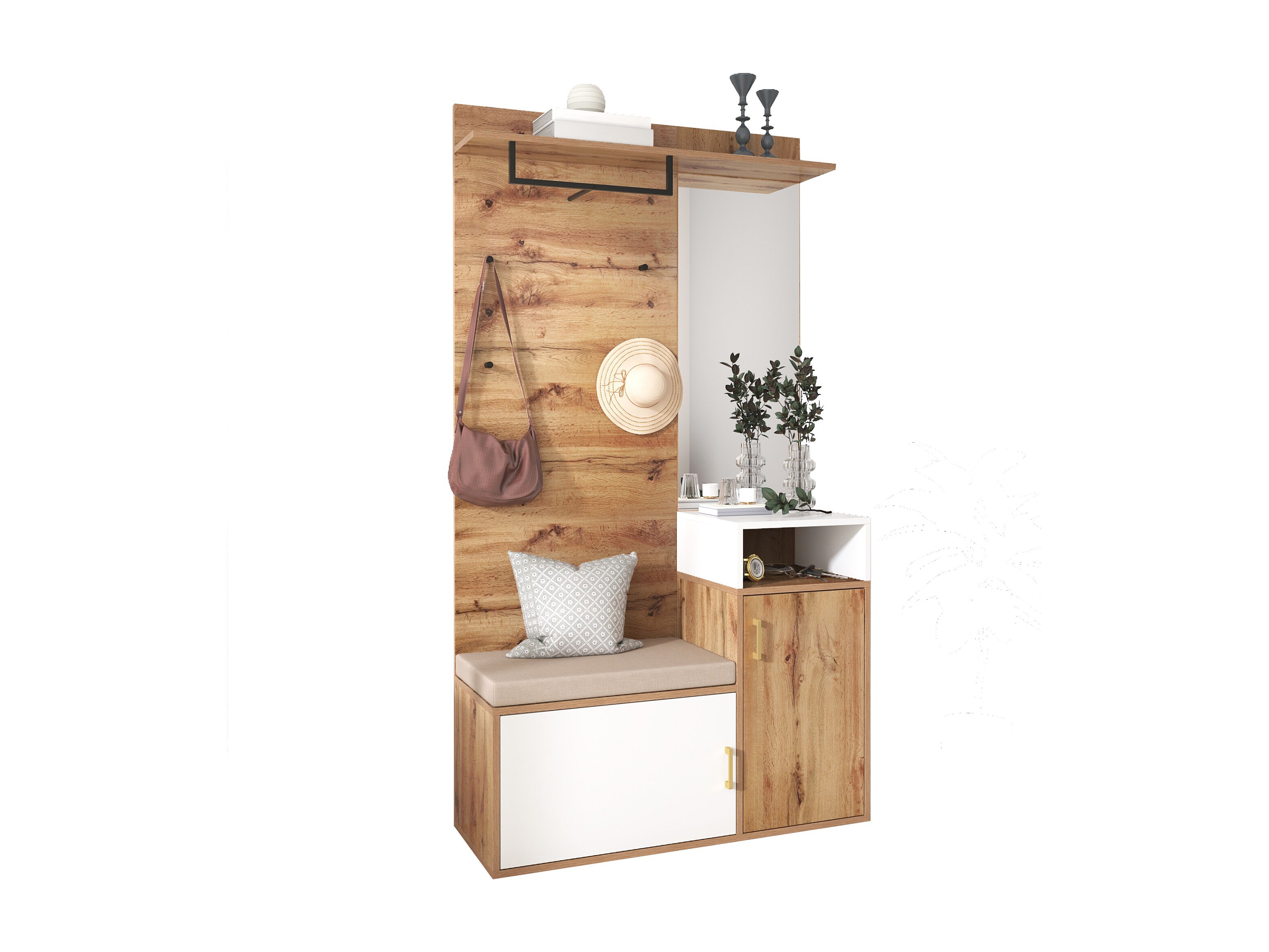 Conjunto de armario con banco zapatero y cojín, frente de perchero con ganchos