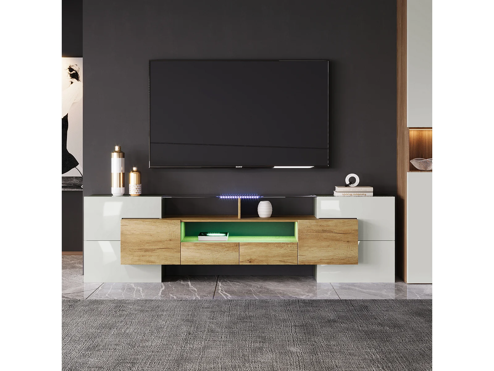 Soporte para TV, soporte para TV brillante, a juego en blanco y negro, con iluminación LED que cambia de color.