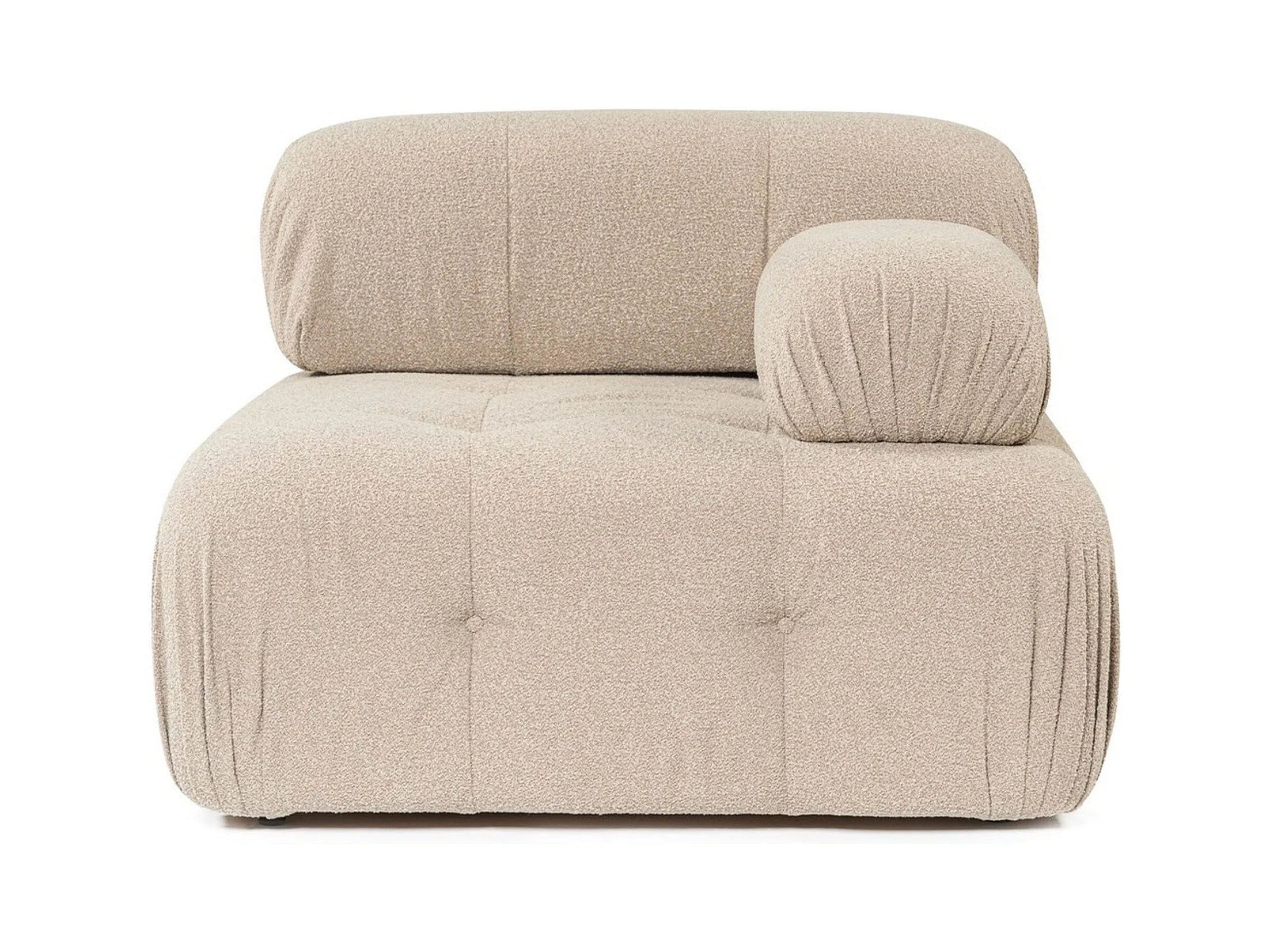Sillón de salón en tela teddy beige con patas de madera colección ENJOY. Estilo escandinavo.