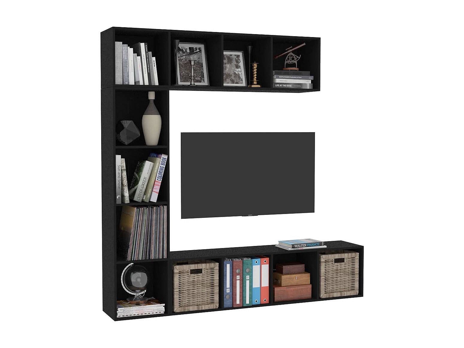 Elida Mueble de TV y librería 3 piezas negro 180x30x180 cm