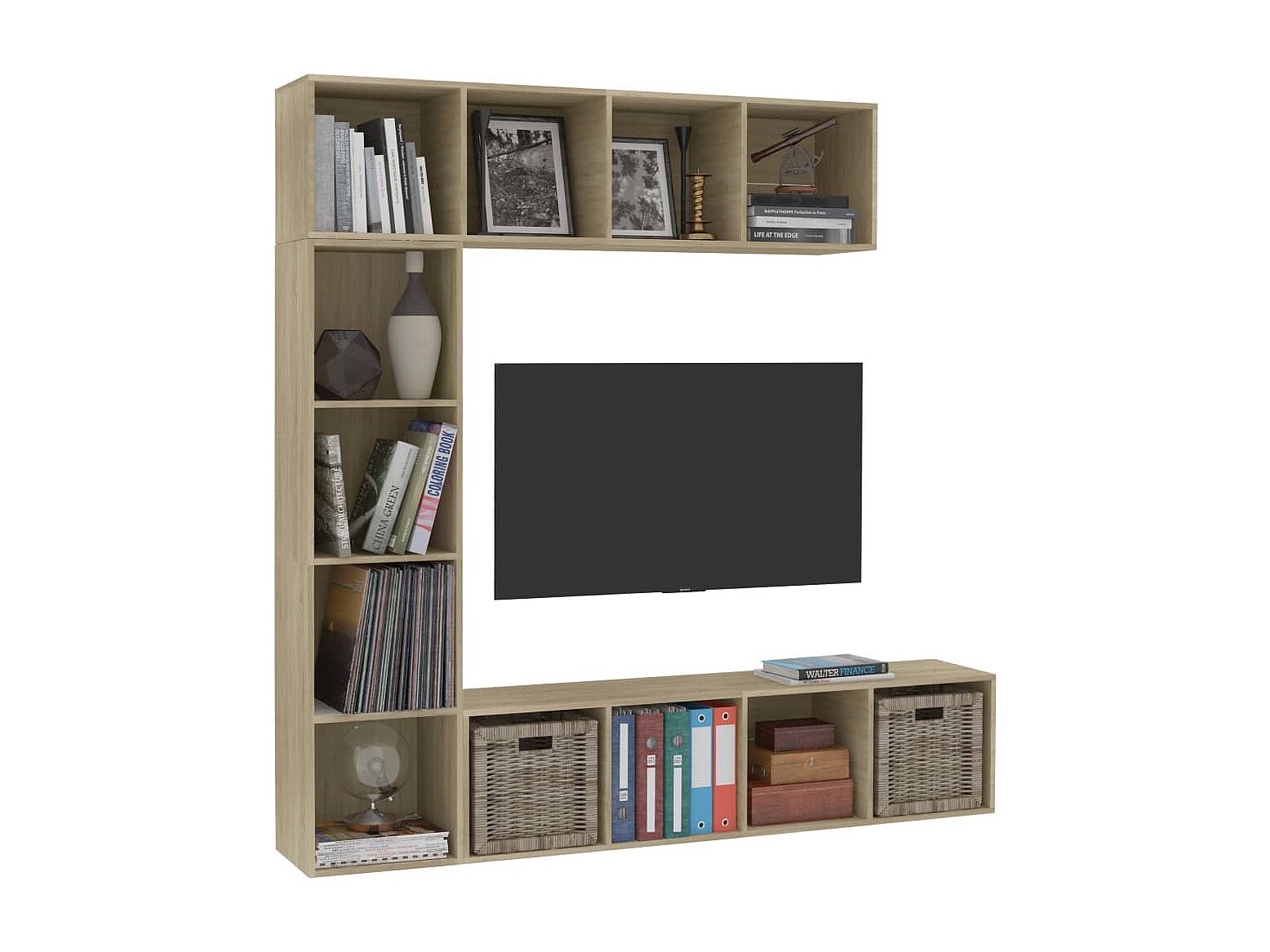 Elida Mueble de TV y librería 3 piezas roble Sonoma 180x30x180 cm