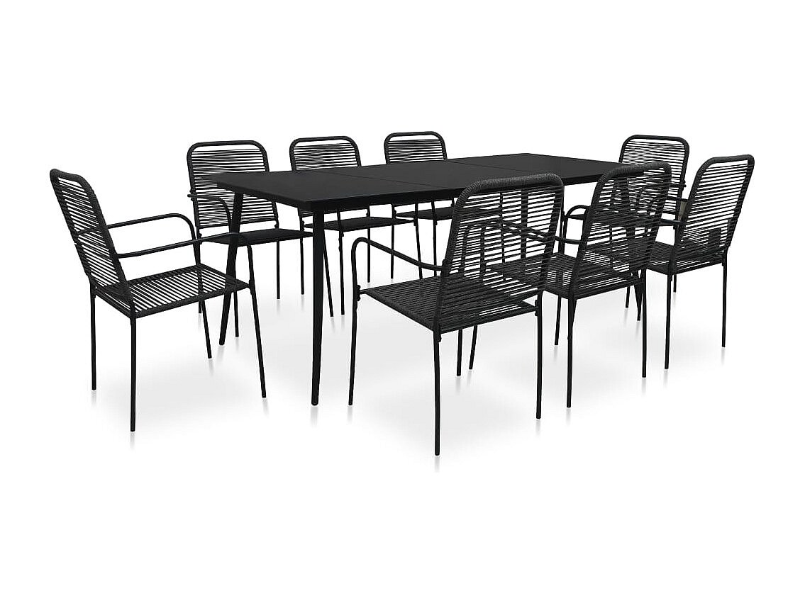 Elin Kristine Set de comedor de jardín 9 pzas cuerda de algodón y acero negro