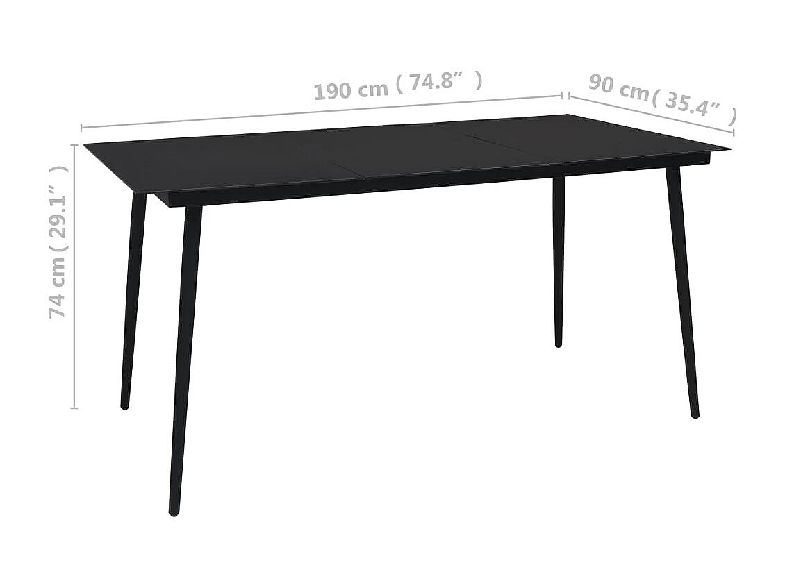 Emory Set de comedor de jardín 9 pzas y cojines ratán sintético negro