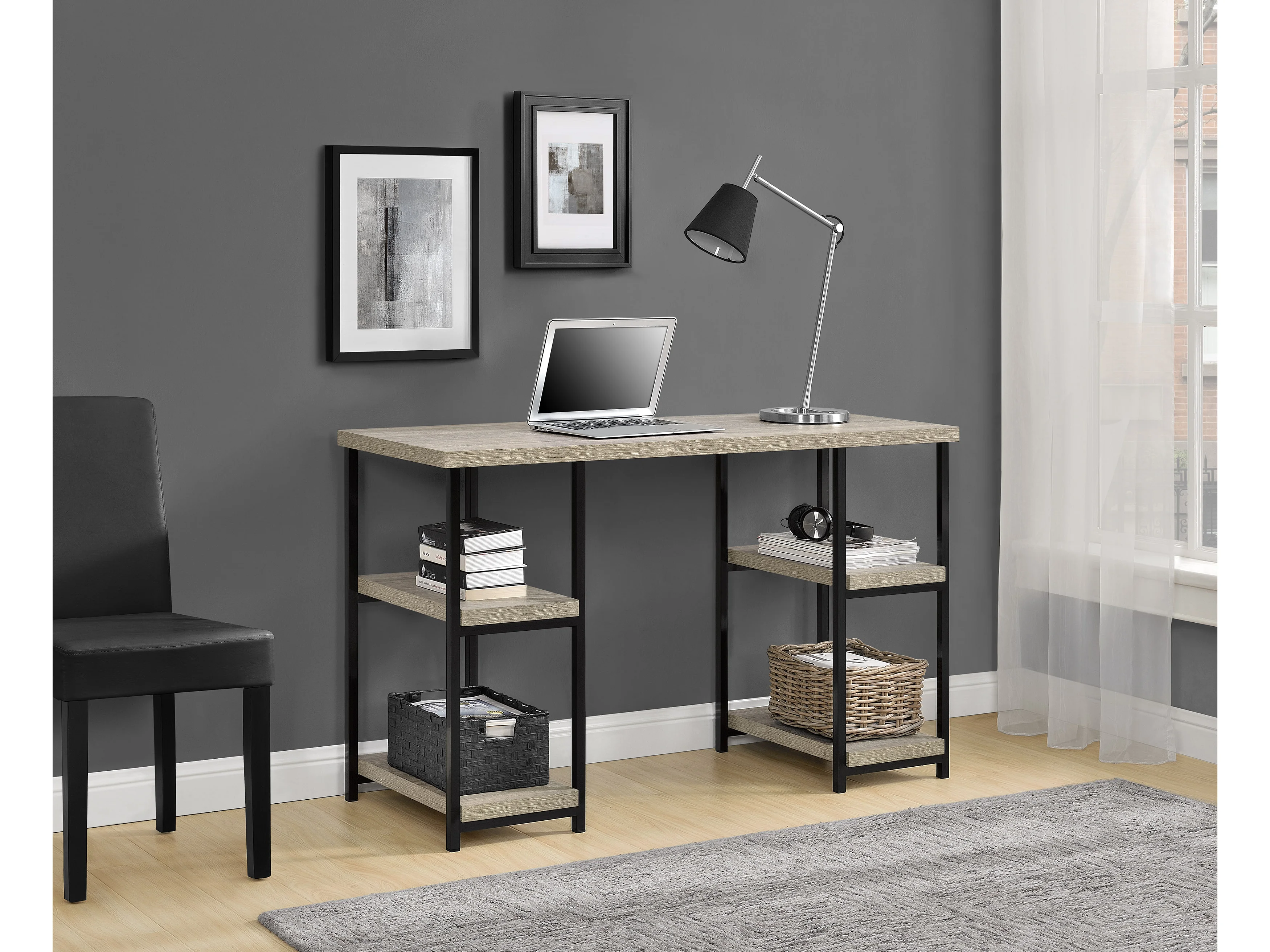 Elmwood | Escritorio con 4 estantes en efecto roble