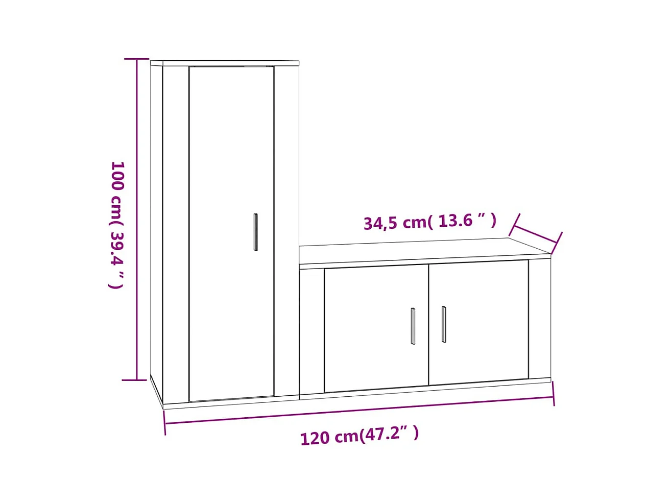 Pete Set de muebles de TV 4 pzas madera contrachapada roble ahumado