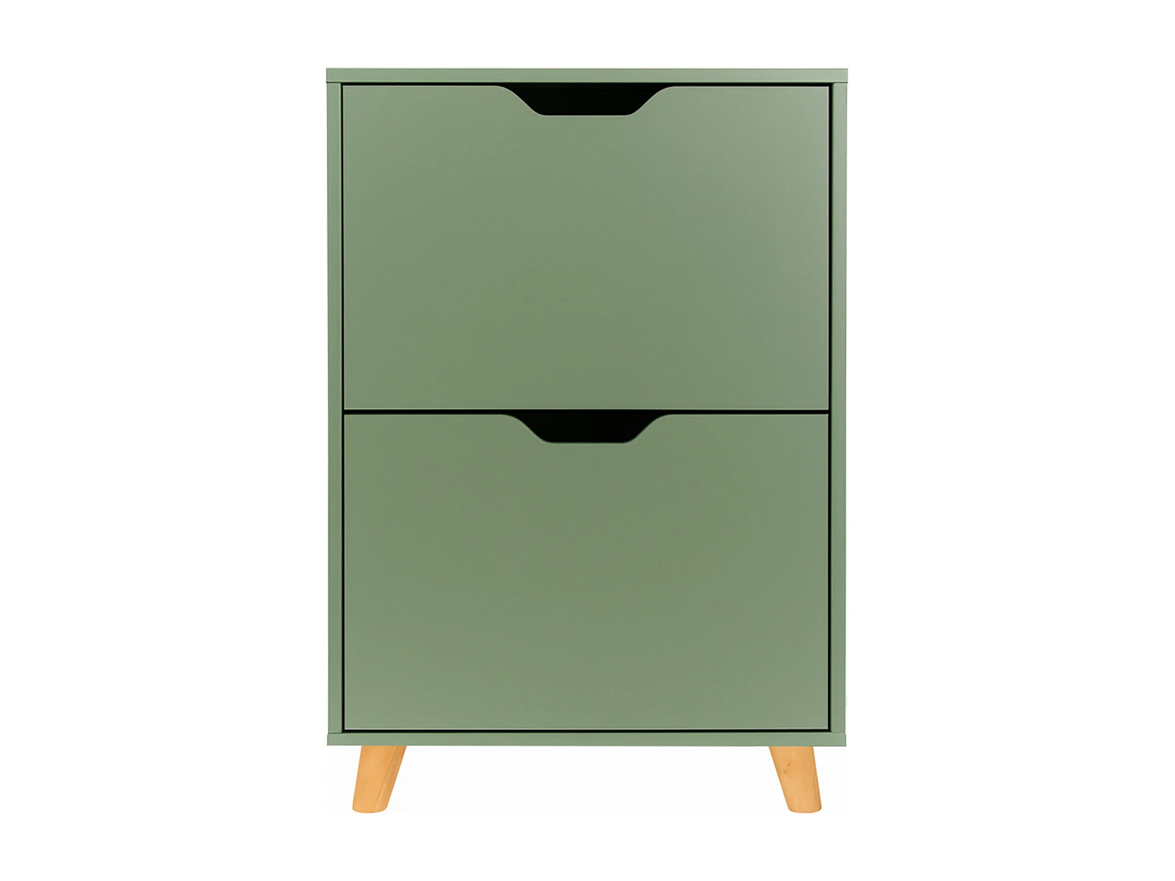 Mueble zapatero almacenaje - A87cm x L90cm x F27cm nogal claro patas verde - Bergen