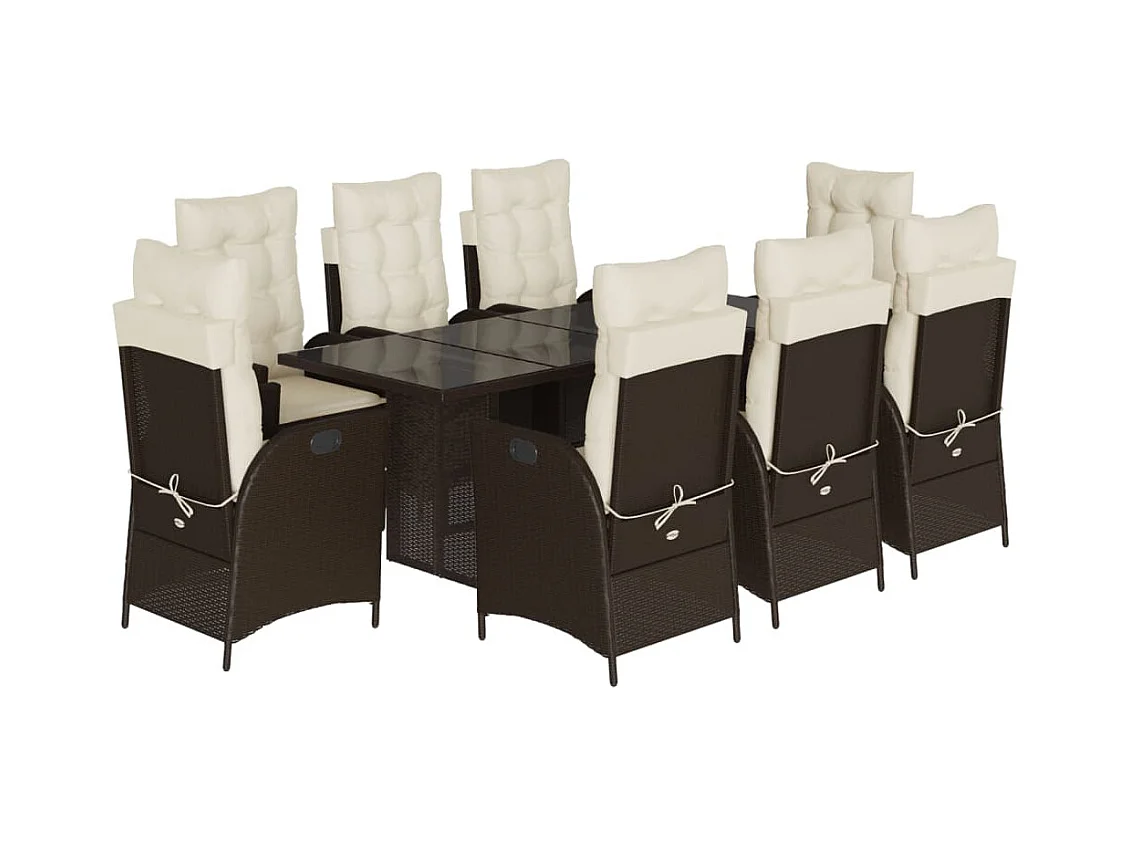 Emory Set comedor para jardín 9 pzas y cojines ratán sintético marrón