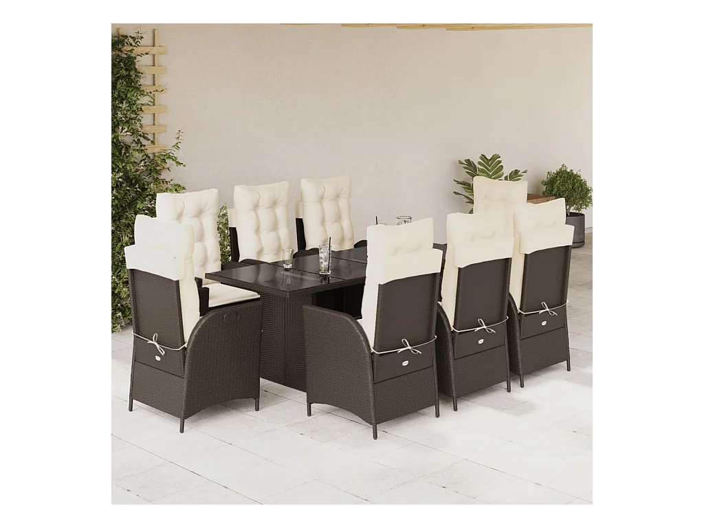 Anselm Set comedor para jardín 9 pzas y cojines ratán sintético marrón