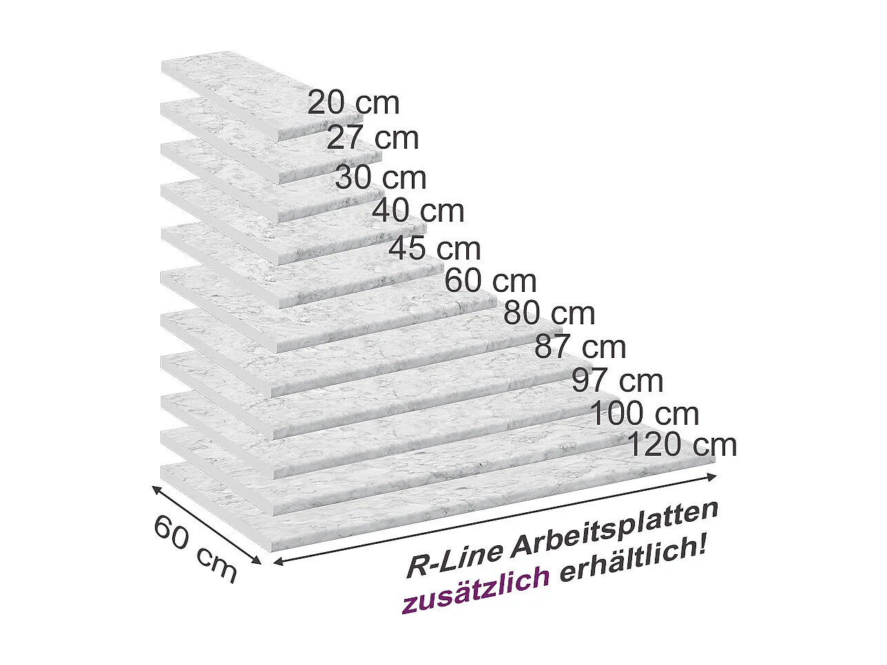 Encimera de cocina blanco/mármol 45x60x2.8 r-line