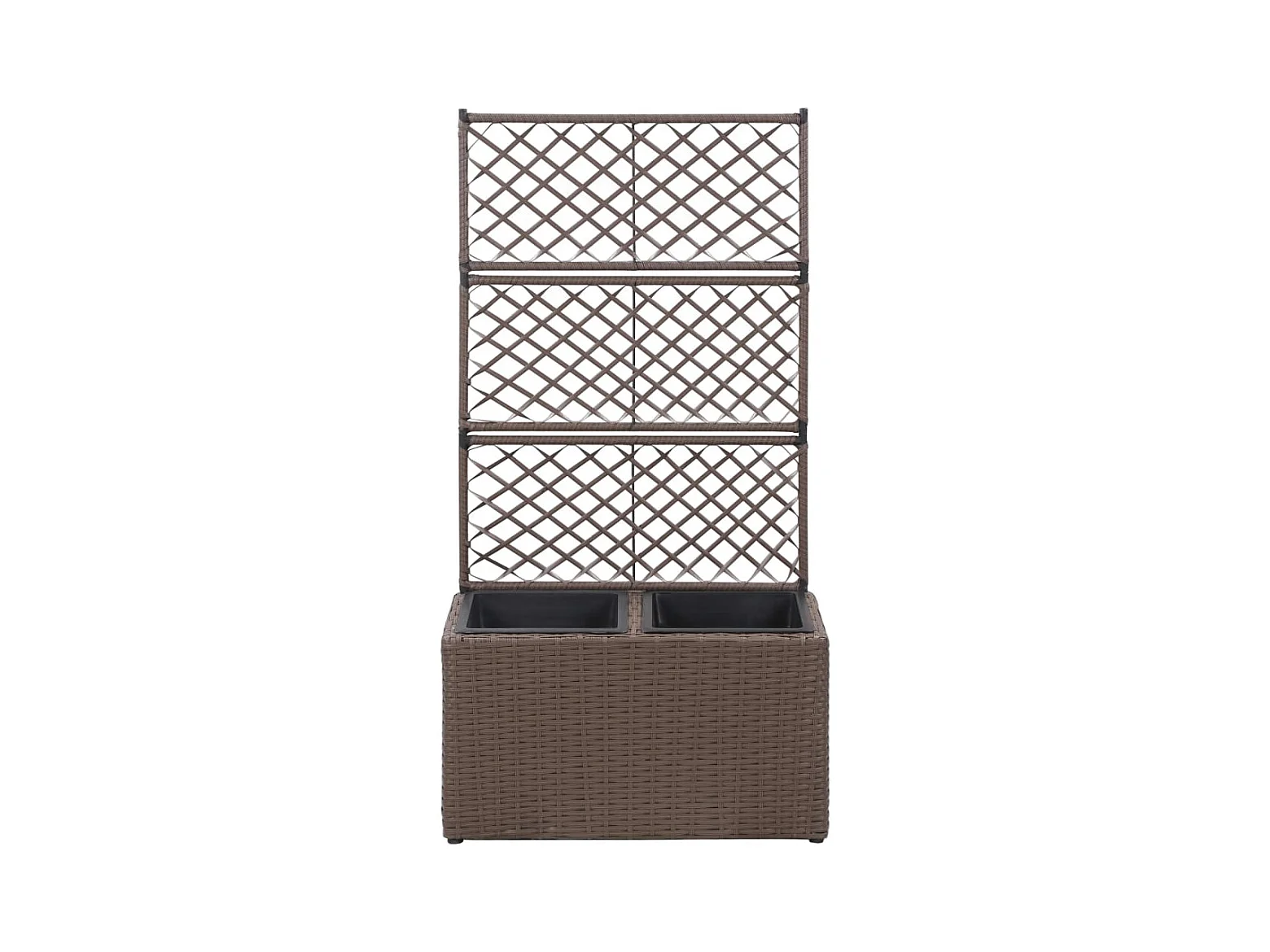 Enrejado y arriate 2 macetas ratán sintético marrón 58x30x107cm