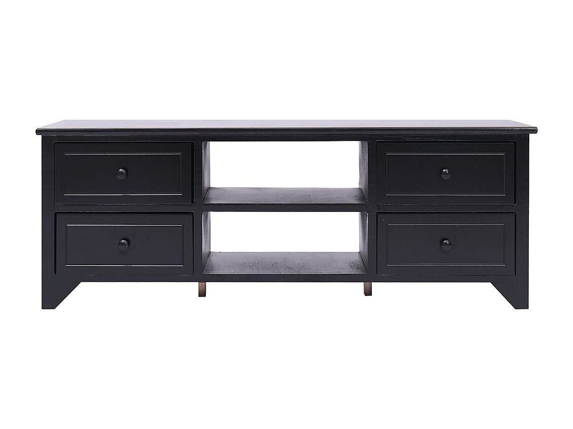 Éric-Paul-Louis Mueble para TV madera maciza de paulownia negro 108x30x40 cm