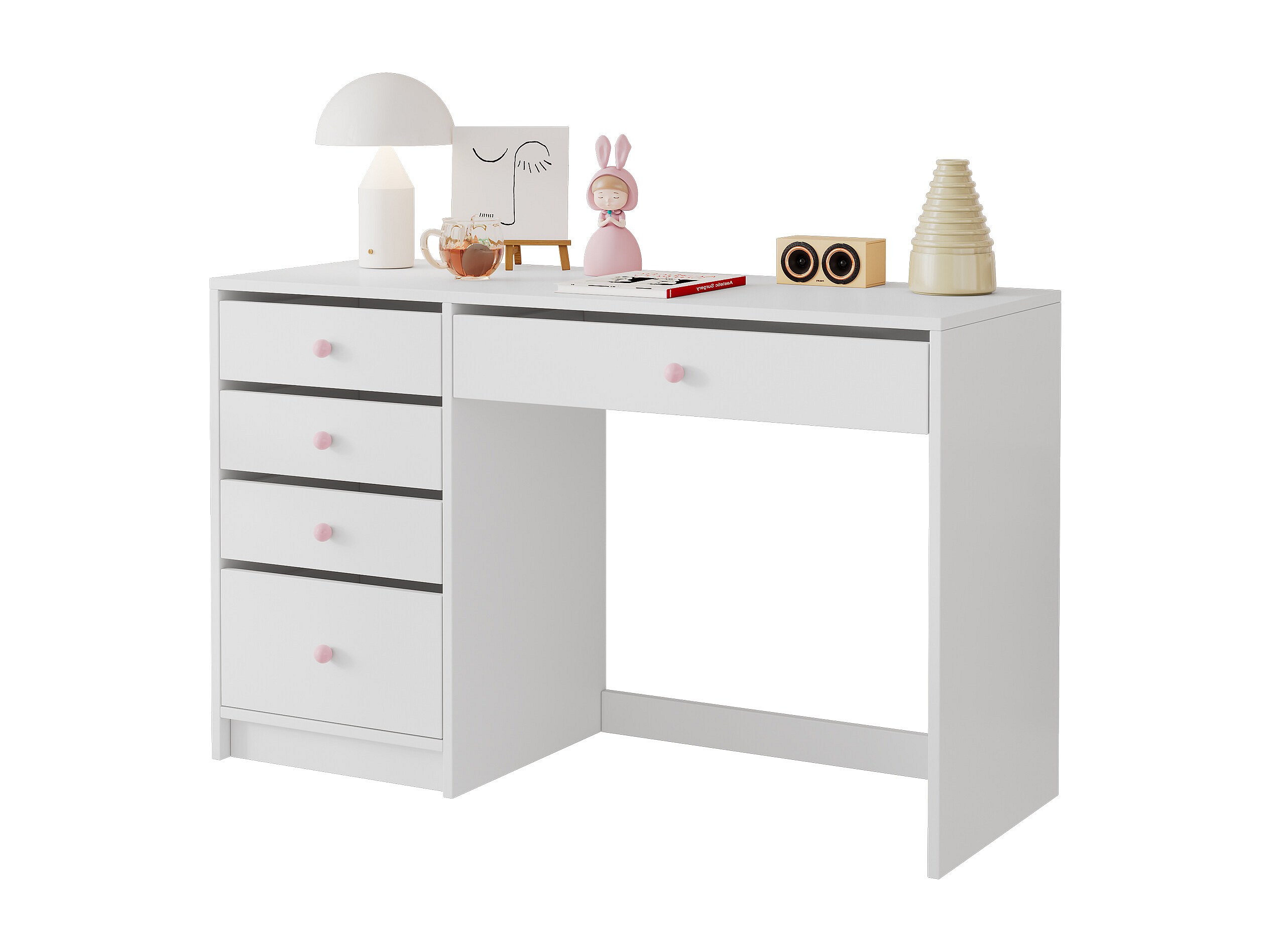 Escritorio 120x45x74 cm - 5 cajones - tiradores de cerámica rosa - MDF - blanco