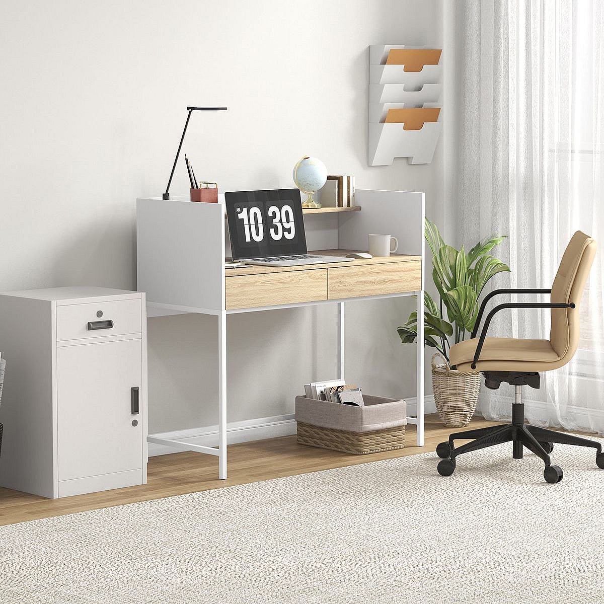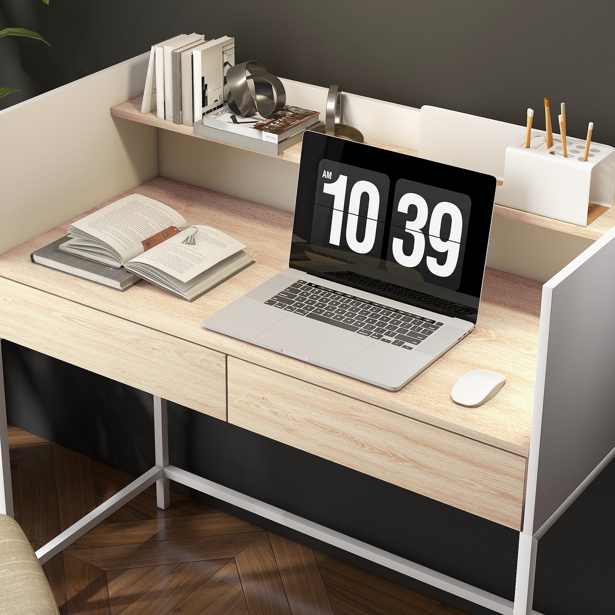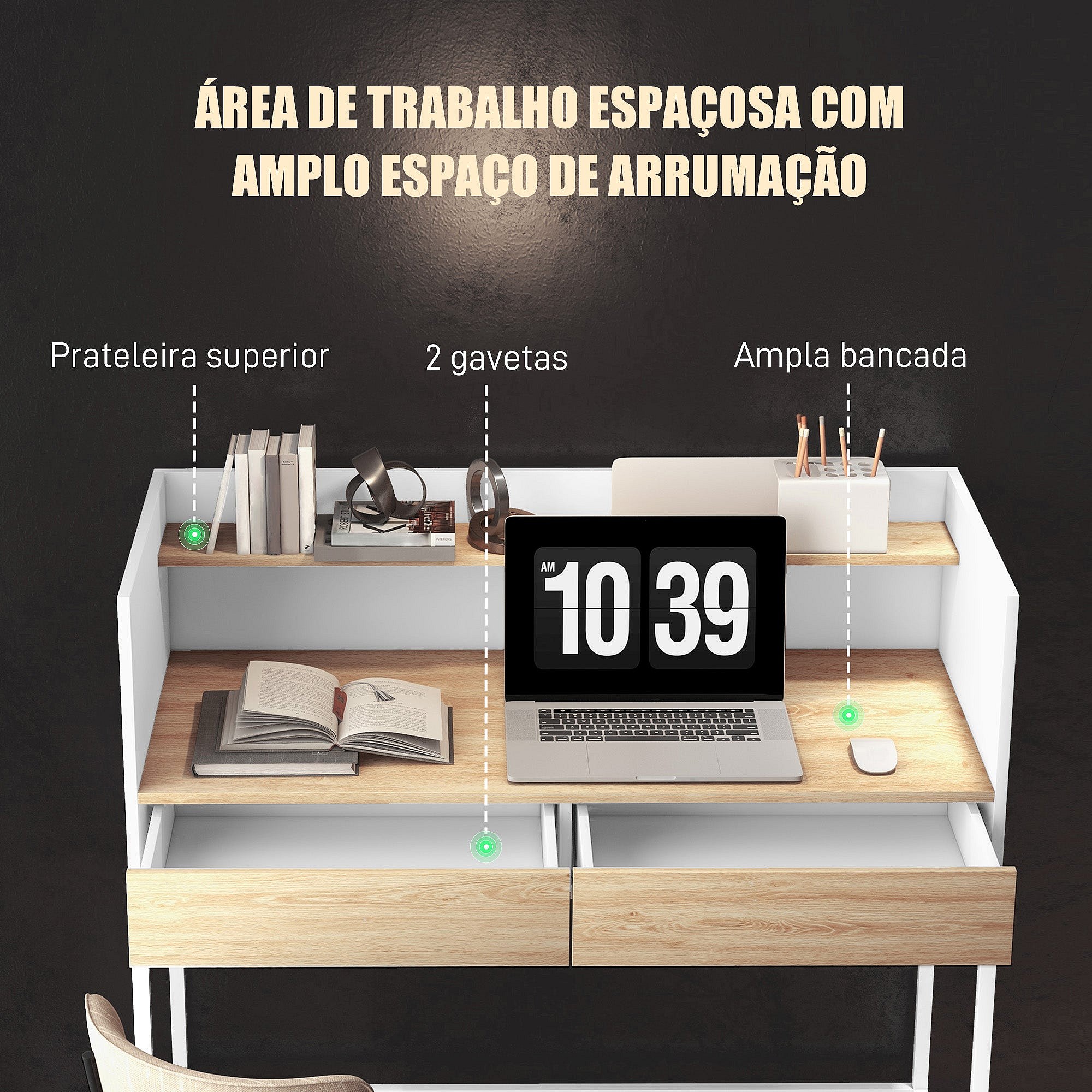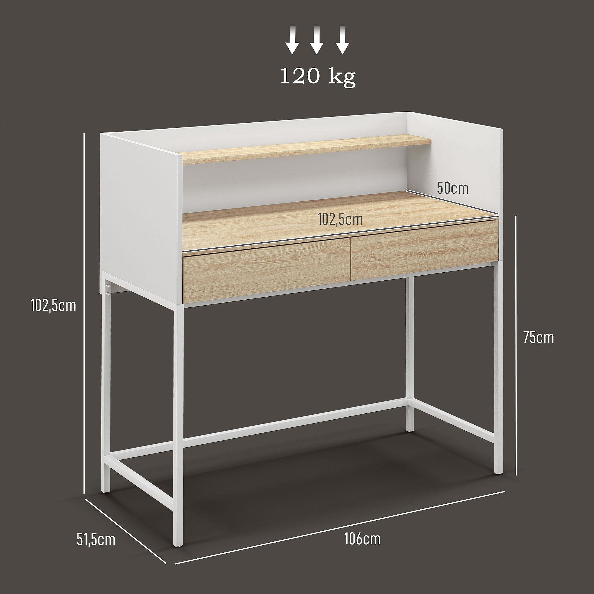 Escritorio Andrea Homcom 2 cajones + estante blanco/roble 102,5x106x51,5 cm