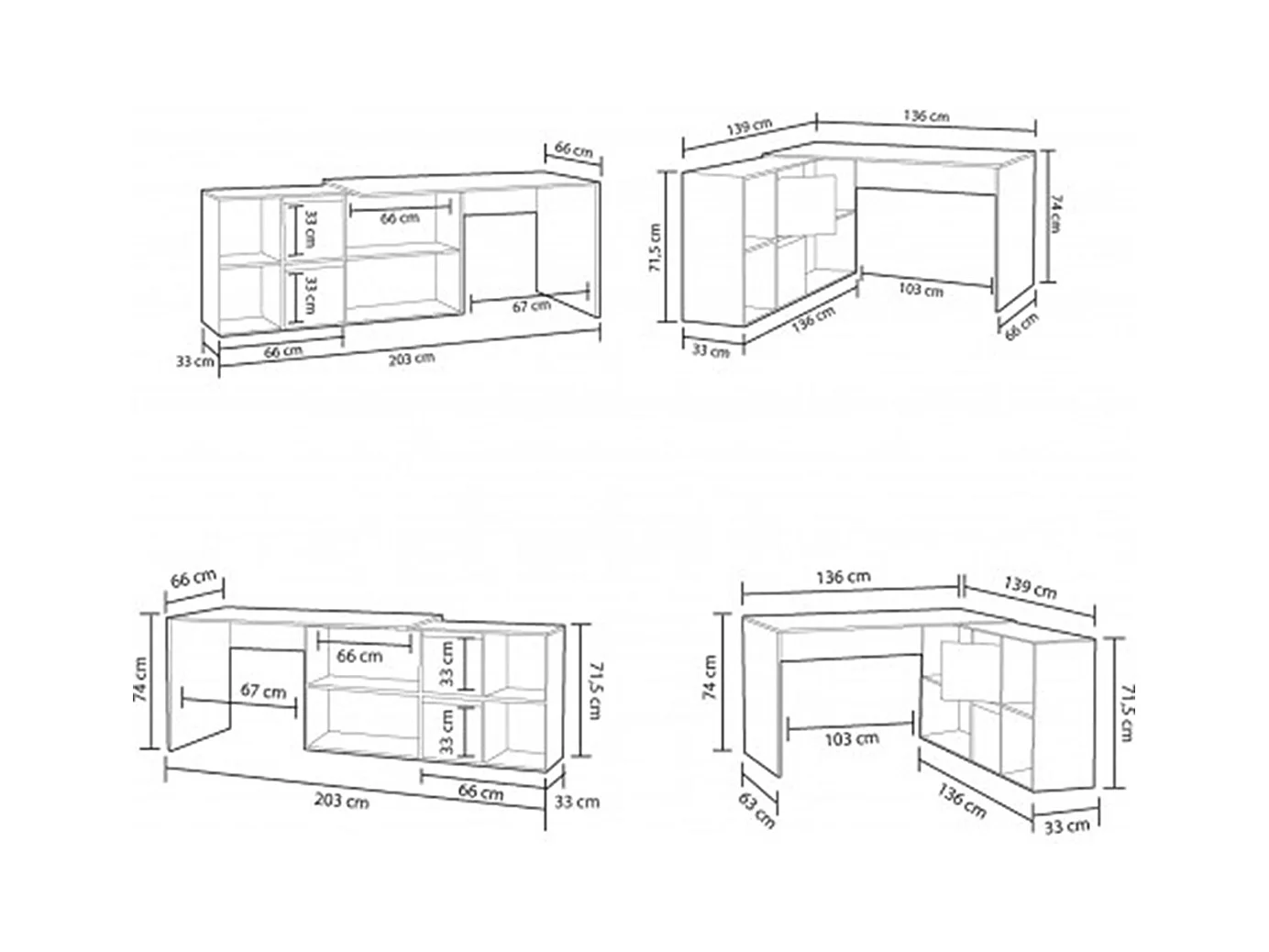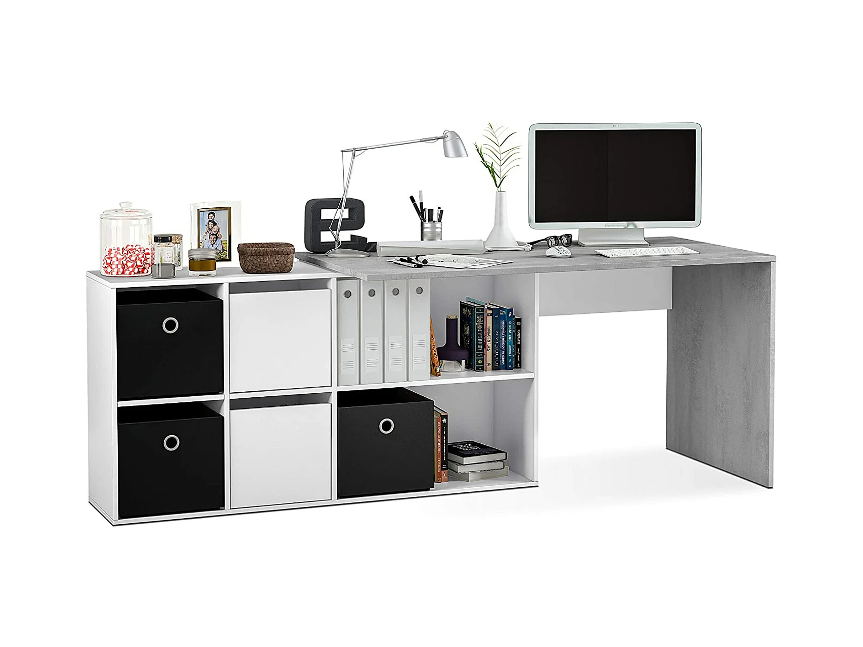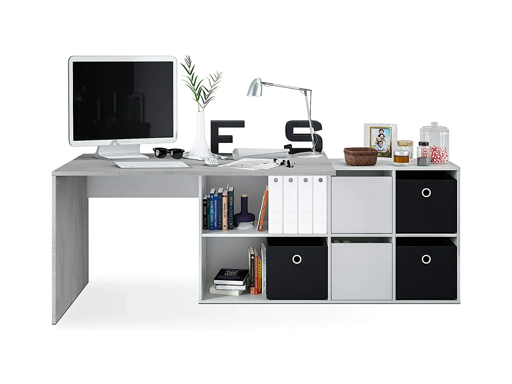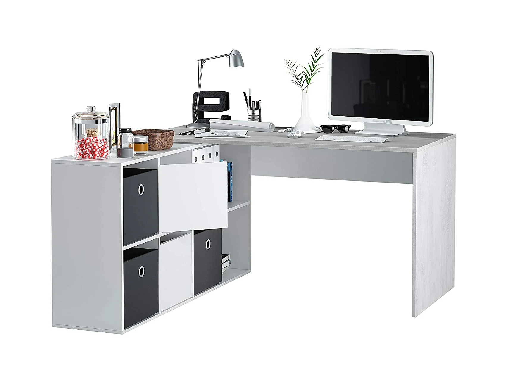 Escritorio con Caja Color Blanco ártico/Cemento - Altura 74 x Longitud 136 x 139 cm